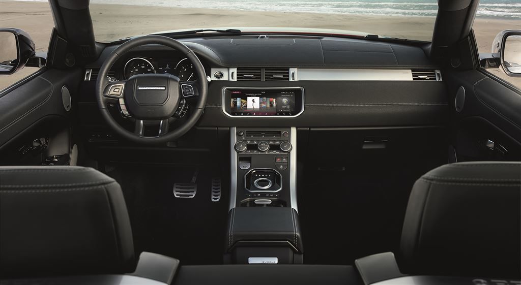 Récemment restylé, l’Evoque échange son toit contre une capote souple dans cette nouvelle déclinaison. Il faut 18 secondes pour ouvrir cette dernière et 21 secondes pour la replier. La manœuvre est automatique et peut s’effectuer jusqu’à 48 km/h. Le constructeur indique qu’une fois fermé, le niveau d’insonorisation est le même que la version traditionnelle. Côté habitabilité, le SUV peut accueillir quatre occupants, le volume de chargement du coffre passe de 420 à 251 litres, mais de nombreux rangements flexibles viennent compenser cette réduction. Un nouvel écran tactile haute définition de 10,2 pouces repris de Jaguar prend place sur la planche de bord, il offre une connexion aux smartphones optimisée, la navigation de porte à porte, la connexion Wifi – 3G et un système audio premium. Mais l’Evoque Cabriolet reste un franchiseur ! Il conserve en effet les mêmes aptitudes tout en renforçant la sécurité à bord avec l’ajout d’arceaux en aluminium intégrés à la carrosserie, ils se déploient en 90 millisecondes en cas de tonneau.