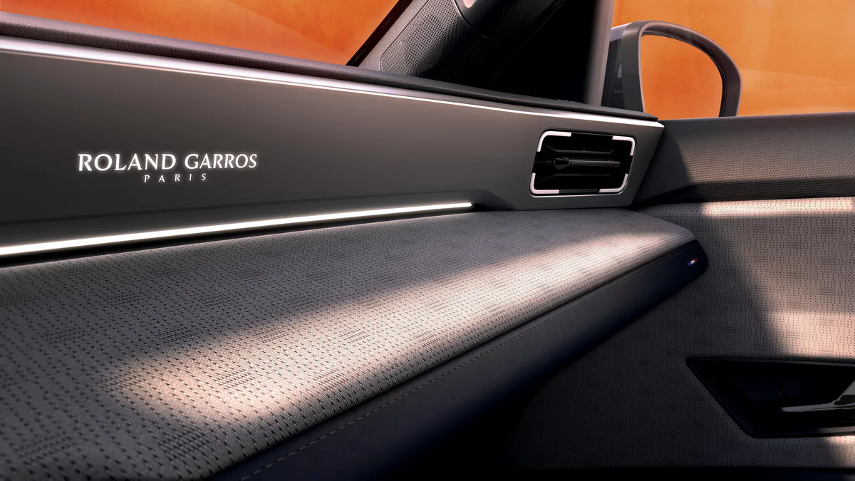 La console centrale et la planche de bord reçoivent des inserts en métal satiné, tandis que le sélecteur de vitesse au volant (e-pop shifter) arbore un logo spécifique. Le souci du détail s’étend jusqu’aux tapis de sol, dont la texture et la couleur évoquent la terre battue des courts parisiens. L’ensemble conserve les écrans numériques haute définition et le système OpenR Link, garantissant une expérience technologique de premier plan.