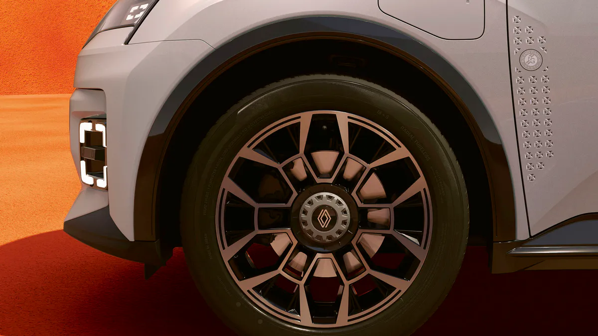 À l’intérieur, Renault a privilégié des matériaux techniques inspirés de l’univers du sport. La sellerie spécifique adopte un textile gris clair dont le tissage rappelle les vêtements techniques de tennis, rehaussé par des broderies du logo Roland-Garros sur les dossiers de sièges.
