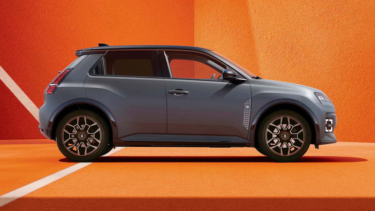 La Renault 5 Roland-Garros se distingue immédiatement par sa teinte de carrosserie exclusive Gris Schiste Satin, bien que d’autres coloris restent disponibles au catalogue. Le design extérieur rend hommage à l’architecture du stade de la Porte d’Auteuil avec des décors en « Croix de Saint-André » apposés sur les portes avant, rappelant la structure métallique du court Philippe-Chatrier.