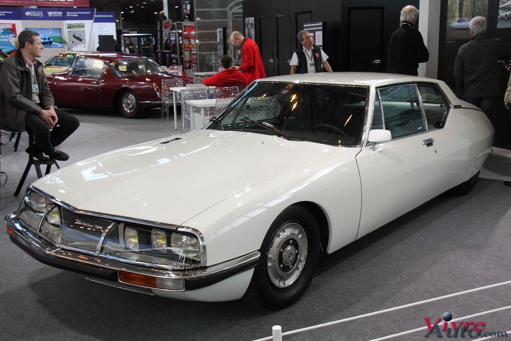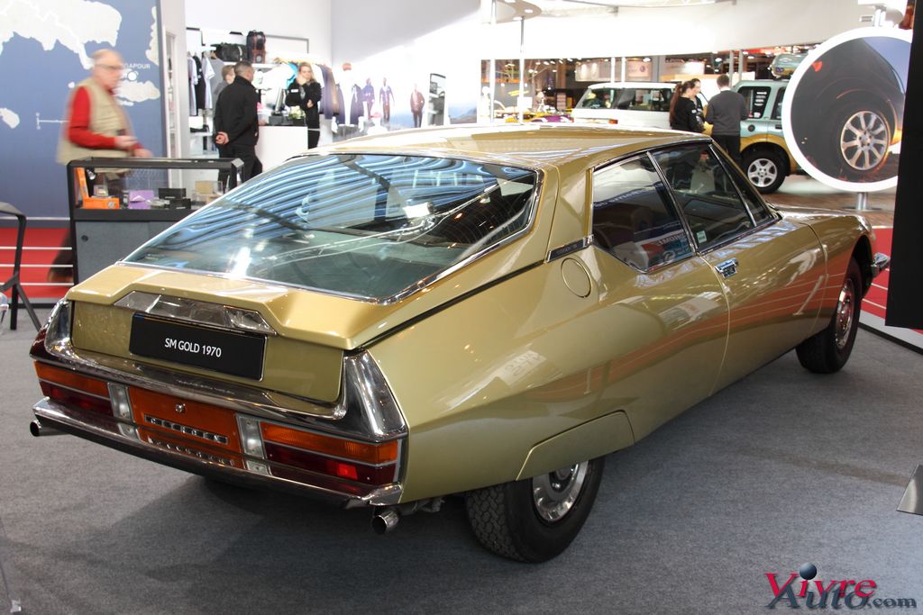 Une SM OR un modèle inédit spécialement préparé pour cette nouvelle édition de Rétromobile. Après une séance de ponçage, deux couches de peinture et trois de vernis, cette SM met en lumière cette voiture aux lignes futuristes et aux technologies avancées. Le modèle exposé, de 1971, est équipé d’un moteur Maserati V6 à carburateurs, de vitres teintées, de l’air conditionné et d’un intérieur cuir Havane.
