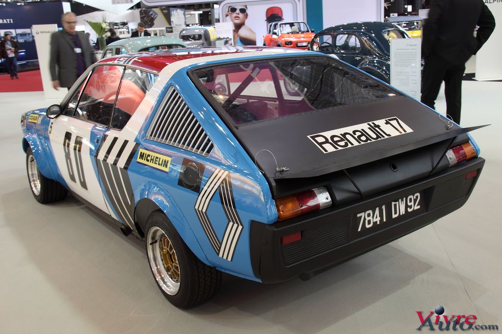 La Renault 17 groupe V de 1972 : La Renault 17 a un passé sportif bien rempli. En effet, elle a écumé les rallyes de 1972 à 1975. Elle sera le premier modèle de Renault à remporter une épreuve du championnat du monde des Rallyes avec la victoire de Jean-Luc Thérier et Christian Delferrier au Rallye Press on Regardless 1974.