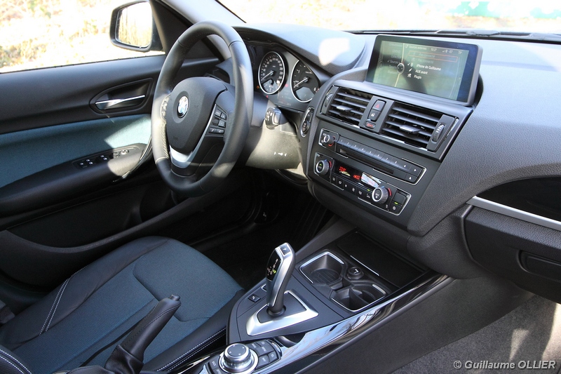 Avec toute cette technologie, on peut se poser la question si cette berline compacte est un exemple de sobriété. Nous avons vérifiés cela. Annoncée à 4,4l/100 km en mixte par le constructeur, nous avons réalisés une moyenne de 6,8 en ville et 4,8l sur route ce qui reste plutôt raisonnable. Doté des technologie BMW EfficientDynamics, la nouvelle BMW série 1 dispose du système start-stop, fort utile mais peu discret lors des démarrages où des vibrations se ressentent. Autre technologie la fonction récupération de l’énergie au freinage où lors des phases de décélération, on apprécie ainsi un frein moteur conséquent. Un mode Eco Pro permet également de réduire les consommations en adaptant la gestion du moteur à un style de conduite plus économique tout en faisant fonctionner le chauffage différemment. A l’inverse le mode Sport offre une direction plus précise et rend l’accélérateur plus sensible, idéal pour les petites routes.