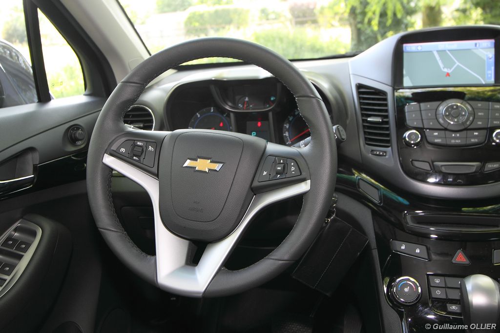 L’atout principal du Chevrolet Orlando c’est son tarif attractif. Vendu à partir de 20 200€ c’est le véhicule 7 places le moins cher après la Logan MCV. Deux niveaux de finitions sont proposés avec le moteur 2.0 VCDi 163: LTZ et LTZ+. A 25 900€, la finition LTZ est riche en équipements : climatisation automatique, régulateur de vitesse, allumage automatique des feux, capteur de pluie, radars arrière, jantes alliage 17’’, rétroviseurs rabattables électriquement, système audio mp3 avec prise USB. La finition LTZ+, notre version, offre en plus la sellerie cuir et le GPS pour 27 500€. Retirez 1 100€ si vous optez pour la transmission manuelle. A titre de comparaison un Renault Grand Scenic coûte environ 5 000€ de plus !