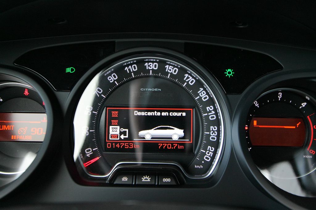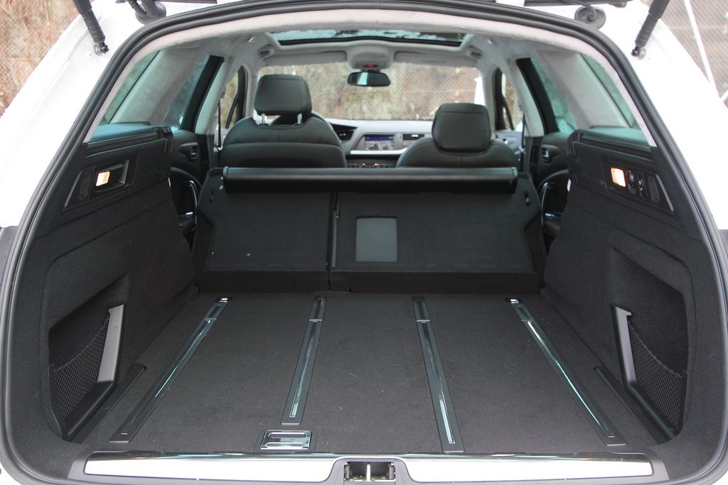 Les passagers arrière sont plutôt bien lotis sauf pour la place du milieu, un peu à l’étroit. Le coffre offre un volume de chargement très correct compris entre 533 litres et 1.490 litres. Muni d’un hayon électrique, son accès peut grandement être facilité grâce à la suspension hydraulique. Offerte de série (sauf en HDi 115) l’Hydractive III+ c’est ce qu’on apprécie le plus dans cette déclinaison. Elle permet de piloter automatiquement l’assiette de la voiture en temps réel selon la charge et la conduite, ou manuellement selon les conditions d’utilisations. Ainsi, la garde au sol peut-être surélevée entre 4 cm (jusqu’à 40 km/h) et 6 cm (10 km/h) pour faciliter les franchissements. De base et jusqu’à 70 km/h, le CrossTourer est rehaussé d’office de 15 mm. Pour revenir au coffre, par exemple il est possible d’abaisser le niveau du seuil de chargement au minium pour moins d’effort. L’opération peut se réaliser depuis le coffre à l’aide d’une commande électrique. Seul bémol il faut rester appuyé tout au long de la manœuvre de descente. Pour la remonté il suffit seulement de remettre le contact.