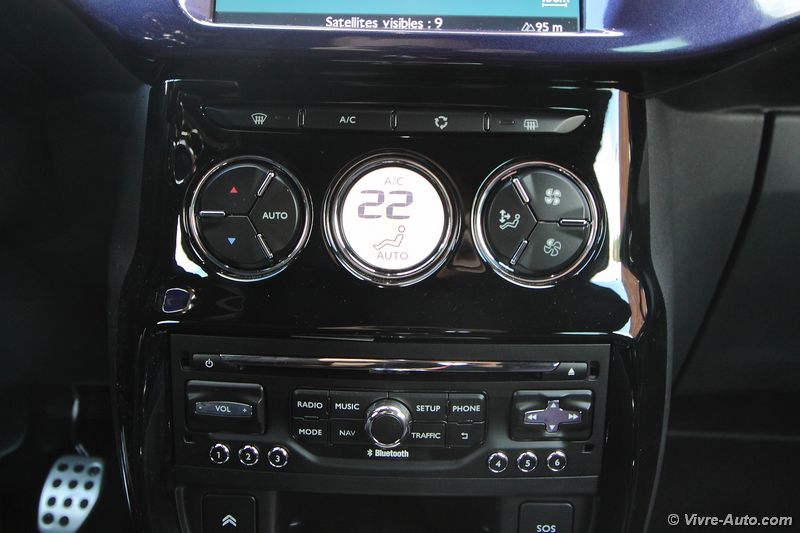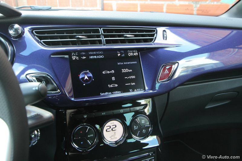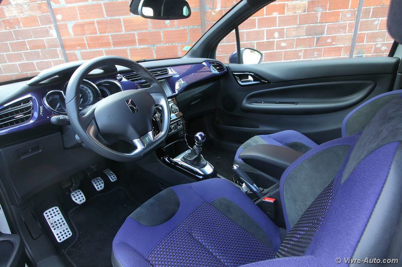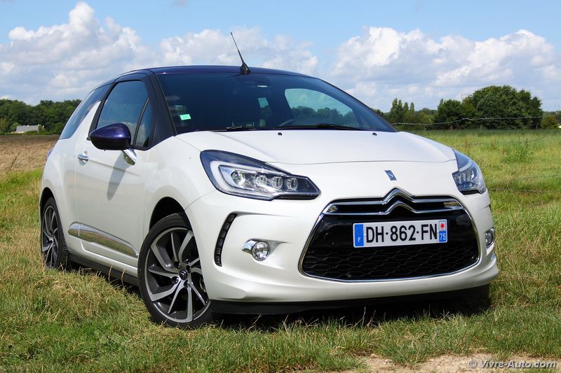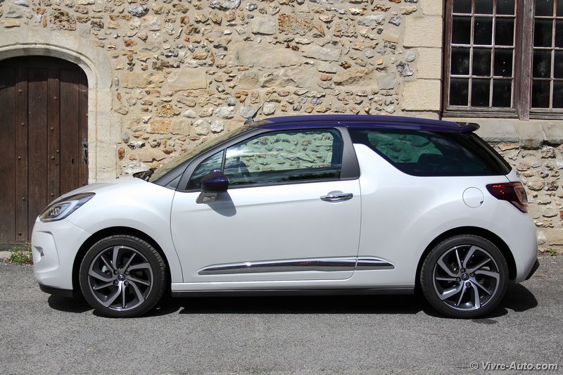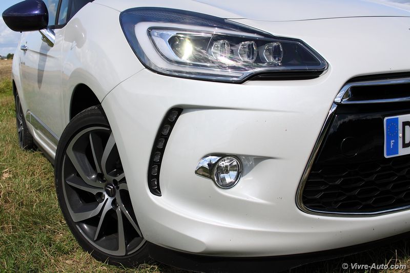 Ce restylage apporte surtout des changements dans la gamme de moteurs. Afin d’être conforme aux normes Euro 6 on note l’apparition de deux moteurs Diesel Blue HDi 100 et Blue HDi  120. En essence, le trois cylindres 1.2 e-VTi 82 entre au catalogue et le 1.6 THP 165 (anciennement 155) connait des évolutions. C’est avec ce dernier que nous avons pris la route. Techniquement, et comme son nom l’indique, ce bloc s’octroie un gain de puissance de 10 ch supplémentaires et la pression d’injection passe à 200 bars contre 120. Les performances sont très correctes avec un 0 à 100 km/h abattu en 7,5 secondes pour une vitesse maximale de 217 km/h. Doté d’une sonorité très agréable, le 1.6 THP se montre extrêmement souple à bas régime et réagit à la moindre sollicitation de la pédale d’accélérateur. Cette polyvalence se traduit par un couple de 240 Nm disponible dès 1.400 tr/ mn ! Ce bloc est accouplé à une boîte de vitesses mécaniques à six rapports, au maniement sans reproche. Très maniable en ville, la DS 3 est une vraie citadine. Mais dans cette configuration, son terrain de prédilection est la route et surtout les virages. Le châssis et les trains roulants sont réglés parfaitement pour un comportement routier très sain. A cela s’ajoute une direction précise et un freinage très efficace et l’ensemble ne dénote pas le confort à bord. Annoncé à 5,1 l/100 km en mixte, la consommation est bien sûre supérieure en pratique. Nous avons réalisés une moyenne de 7,5 l en mélangeant conduite souple et dynamique. C’est une bonne note au vue de la puissance. Le système Stop&Start, indisponible précédemment, s’est montré très discret et efficace au redémarrage.