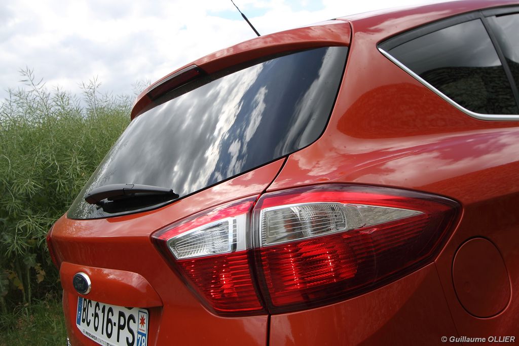 Après sept ans de commercialisation le Ford C-Max passe le relais à un nouveau véhicule. Comme la concurrence, ce monospace compact propose désormais deux carrosseries distinctes. Une version 5 places, comme notre modèle, et une version sept places, plus longue de 14 cm, plus haute de 6 cm et disposant de portes arrière coulissantes, un système très rare sur le segment. Côté look, les designers Ford sont partis des bases du Kinetic Design en vigueur pour les nouveaux modèles depuis le S-Max en 2005. Comme c’est le cas pour la Focus, la marque poursuit son programme « One Ford » en ne proposant qu’une seule version de son nouveau C-Max au lieu de faire des modèles adaptés à chaque pays. C’est donc avec une face avant et un profil nettement plus dynamique que le C-Max deuxième génération tente de séduire la planète entière. La ligne de toit plongeante à l’arrière et le pli de caisse au niveau des poignées de portes ne font pas regretter les traits plus cubiques du premier C-Max. Adieu aux optiques arrière verticales de la première génération, la marque reprend un dessin plus classique horizontal. Globalement, ce nouveau C-Max est plutôt séduisant et beaucoup plus dynamique que l’ancienne génération.