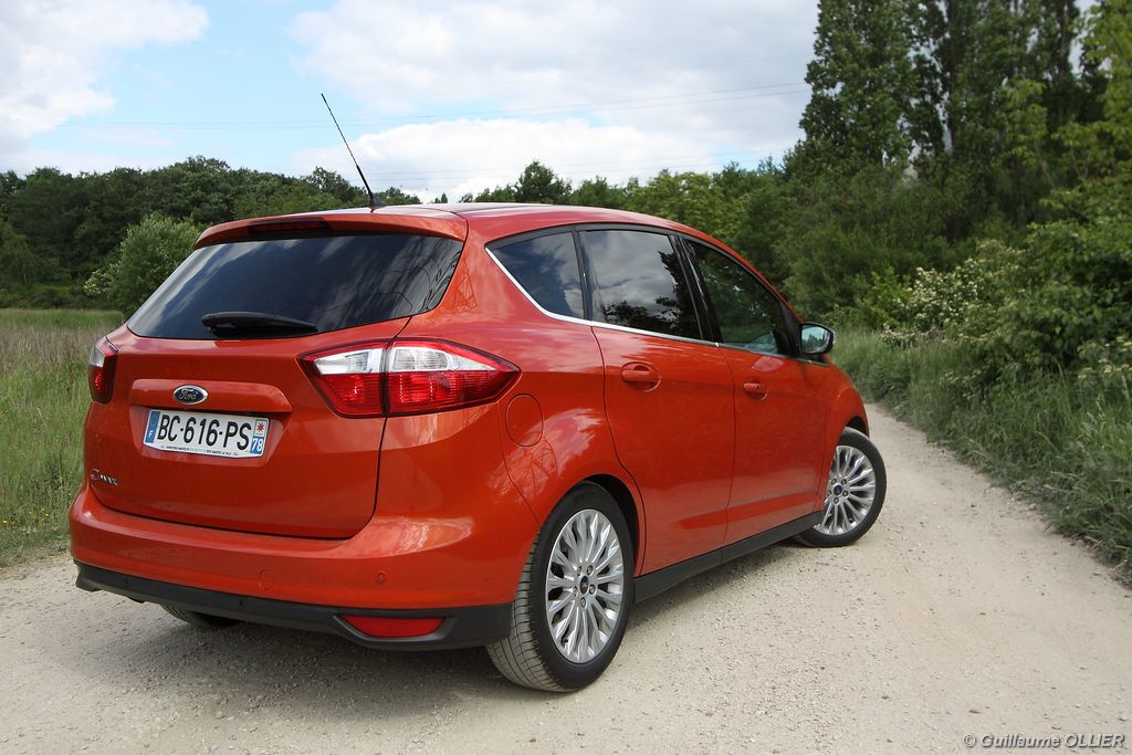 Le tarif de 26 400 € réclamé pour cette version Titanium TDCi 115 est très attractif au vu de l’équipement proposé. Le Renault Scenic Exception dCi 110 est facturé à 28 350 €, et le Peugeot 5008 Allure HDi 112 est affiché à 28 300 €, mais son équipement est largement inférieur. Deux finitions sont proposées : Trend et Titanium. Avec cette dernière, le C-Max est plus beau et surtout mieux équipé. Au programme : climatisation régulée bizone, prise USB, bluetooth et commandes vocales, GPS Europe sur carte SD, Keyless, jantes alliage 16″, sécurité enfants électrique, tablettes aviation, détection de la pression des pneus, aide au démarrage en côte, et l’aide au stationnement arrière. De nombreuses options bon marché sont proposées, comme la caméra de recul à 250 €, le Keyfree System à 400 €, le pack hiver à 300 €, le pack Techno Plus avec hayon électrique à 600 €… Avec un rejet de 119 g de CO²/km, vous obtiendrez un bonus de 100€ lors de l’achat. Enfin, si le Grand C-Max vous tente, comptez 1 300€ de plus que le 5 places.
