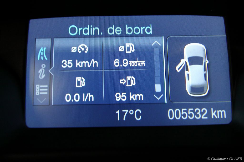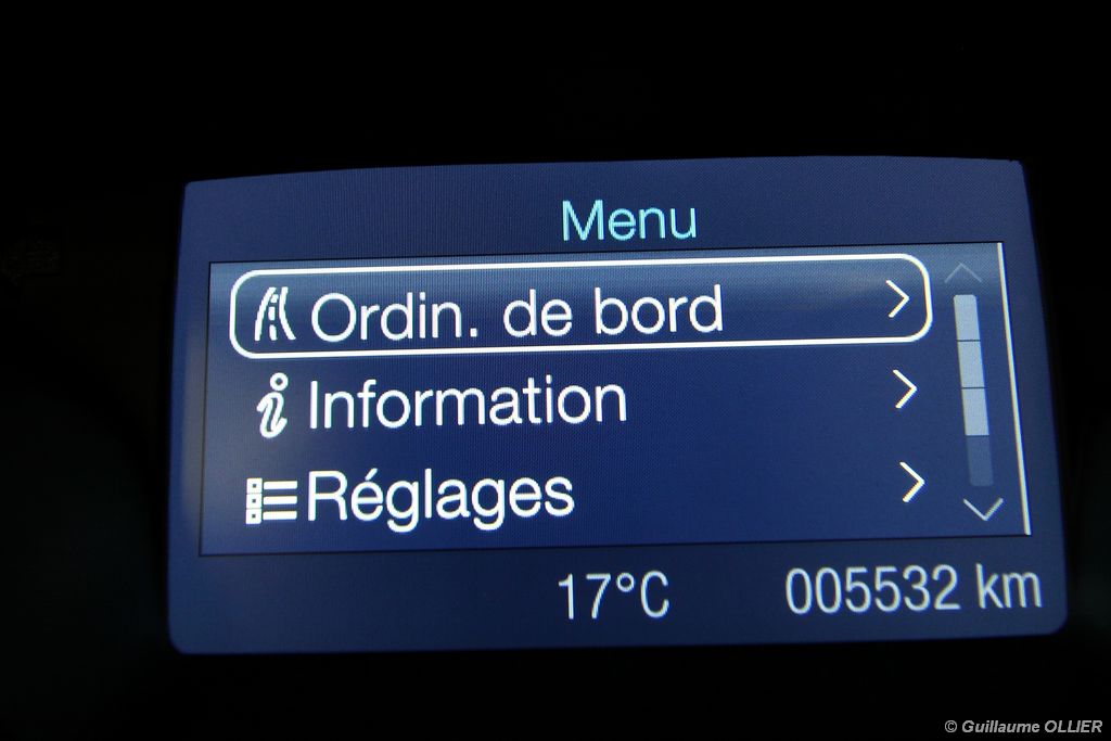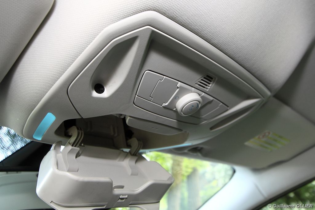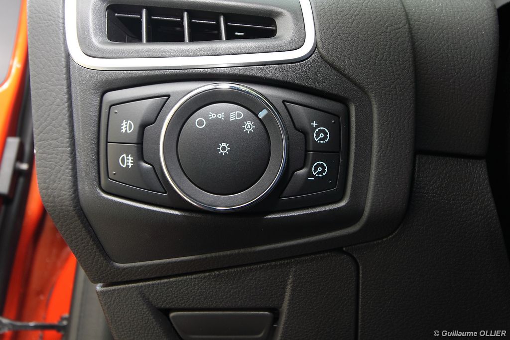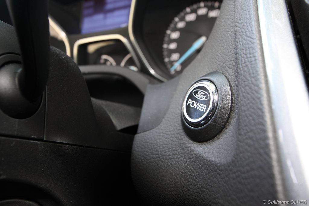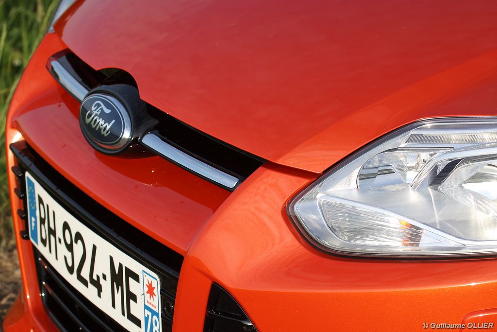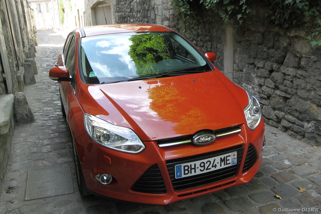 Notre version d’essai dispose du bloc 1.6 TDCi Diesel de 115 ch atteint à 3 600 tr/mn. Avec un couple de 270 Nm disponible dès 1 750 tr/mn ce moteur se montre à l’aise pour emmener les 1 380 kg de la Focus. Les relances sont ainsi bonnes, on dénote juste un creux marqué à bas régime. La sonorité est un peu plus présente que dans une Peugeot 308 dotée de la même motorisation. Afin de réduire la consommation, le TDCI 115 est équipé d’un système Stop & Start. Nous avons réalisé une consommation mixte moyenne de 5,8 l/100 km ce qui est tout à fait raisonnable. Petit détail pratique, la trappe à carburant dispose d’une fermeture intégrée. Sur autoroute la tenue de cap est rassurante, et les sièges disposant de soutien lombaire sont agréables pour les longs trajets, dommage que des bruits d’air viennent gâcher le tableau. La Focus se montre également très agile sur les petites routes, elle enroule les courbes rapides avec une bonne stabilité. Son bon comportement routier n’est plus à prouver. La suspension absorbe correctement les irrégularités de la route, on dénote une légère fermeté à basse vitesse, mais dans l’ensemble la Focus est confortable malgré les jantes 17 pouces. La direction à assistance électrique délivre un ressenti assez naturel. Rien à redire sur le freinage, qui se montre très efficace. Pour se démarquer de la concurrence, Ford a doté sa Focus de nombreux équipements technologiques. Tout d’abord le Pack City Easy, cette option à 300€ va encore plus loin dans l’aide à la conduite. La manœuvre de stationnement en créneau est prise en charge quasi automatiquement par la voiture, il vous suffit simplement de passer à faible allure à côté de la place disponible et le système vous indique s’il est possible de s’y garer. Ensuite il est juste nécessaire d’enclencher la marche arrière et d’embrayer tout doucement. La direction est gérée à 100% par le module. Ce système s’est montré dans l’ensemble très fiable et il fonctionne également très bien la nuit. Il arrive parfois quand même que la voiture monte sur le trottoir. Enfin, c’est au niveau de la sécurité que l’on retrouve le plus d’aides électroniques embarquées, généralement réservées aux voitures haut de gamme. C’est ainsi une première pour une compacte puisque la nouvelle Focus dispose d’un régulateur de vitesse adaptatif, un système de freinage automatique sous 30 km/h, une alerte de franchissement de ligne avec correction automatique de la direction, la reconnaissance des panneaux, la détection des angles morts, l’aide au démarrage en côte et la surveillance de la somnolence du conducteur !