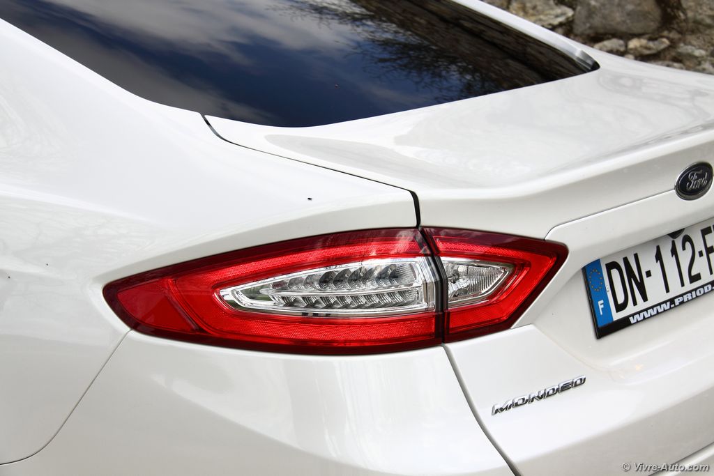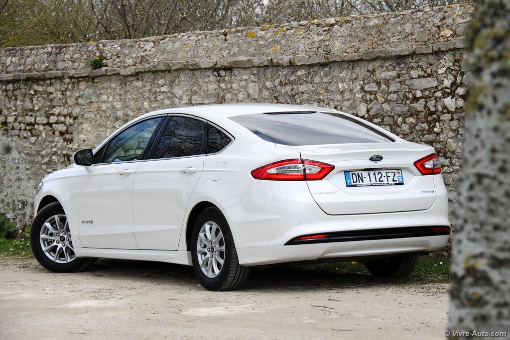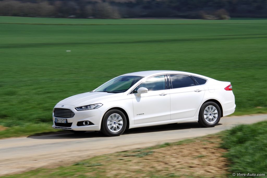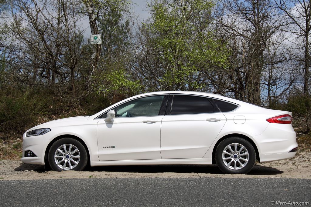 Affichée à 33.700€ la Ford Mondeo Hybrid profite d’un bonus de 1.685€. Dans de nombreuses régions la carte grise est gratuite. Quant aux sociétés, la TVS est exonérée pendant 8 trimestres. Disponible uniquement en finition Titanium, elle est très bien dotée ! Feux automatiques, détecteur de pluie, climatisation automatique, sièges sport et sellerie cuir, aide au démarrage en côte, freinage d’urgence, aide au stationnement avant et arrière, lecture des panneaux, détecteur de franchissement de ligne, accès et démarrage sans clef, GPS… La liste des options comporte la peinture métallisée (700€), le régulateur adaptatif (500€), l’alarme (350€), le toit ouvrant (450€), le détecteur d’angle mort (700€), les feux à LED avec sièges électriques (800€), le Park Assist (250€), la caméra de recul (300€) et le système Hifi Sony et ses 11 haut-parleurs (650€). Par rapport à la concurrence, la Mondeo est au même prix qu’une Toyota Prius Hybrid à équipements équivalents. Mais cette dernière propose d’autres finitions qui la rendent accessible sous les 29.000€. Chez Peugeot, la 508 Hybrid4 s’affiche à 44.250€.