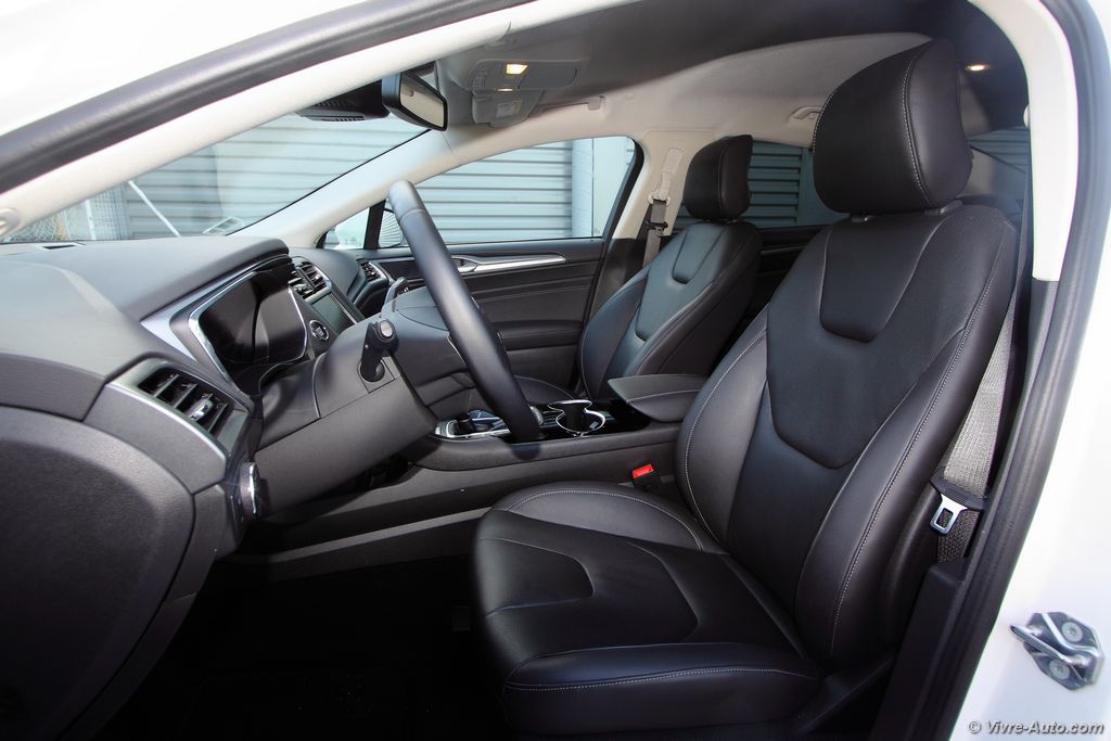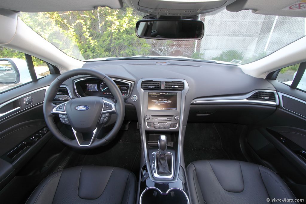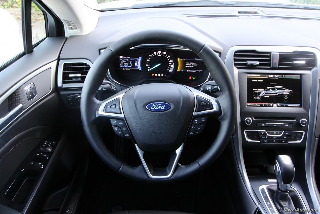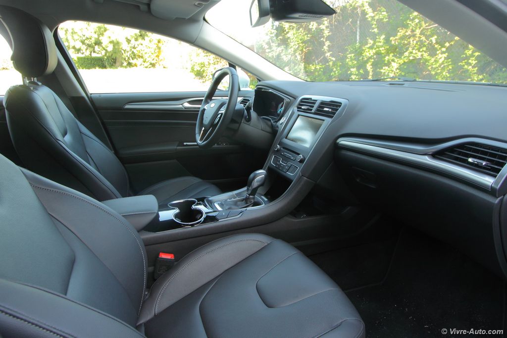 Est-ce que cette Ford Mondeo est économique ? La réponse est oui, comme en démontre notre exemple. Sur 441 km, le moteur électrique à parcouru tout seul 184 km soit plus d’un tiers (41%) du parcours total. Sur cette même distance, notre consommation moyenne s’est affichée à 5,9 l/100 km sans forcément jouer la carte de la conduite économique à chaque fois. Avec le plein complet l’autonomie se porte à environ 850 km. La batterie lithium-ion de 35 kW se régénère assez fréquemment, sur différents parcours, l’ordinateur nous a indiqué qu’elle s’était rechargée jusqu’à 99%. Nous aurions aimé que le frein moteur soit un peu plus important, comme c’est le cas sur de nombreuses voitures hybrides. La Mondeo dispose en revanche d’une assistance en descente activable depuis un bouton sur le levier de vitesse. Le bilan est donc très positif. Il est logique que si vous ne réalisez que de la route, l’utilisation de l’hybride est limité. Pour autant nos trajets en comprenaient beaucoup. Nous avons également apprécié l’excellent comportement routier avec à la fois des suspensions qui filtrent très bien les irrégularités de la route et une tenue de route sécurisante.