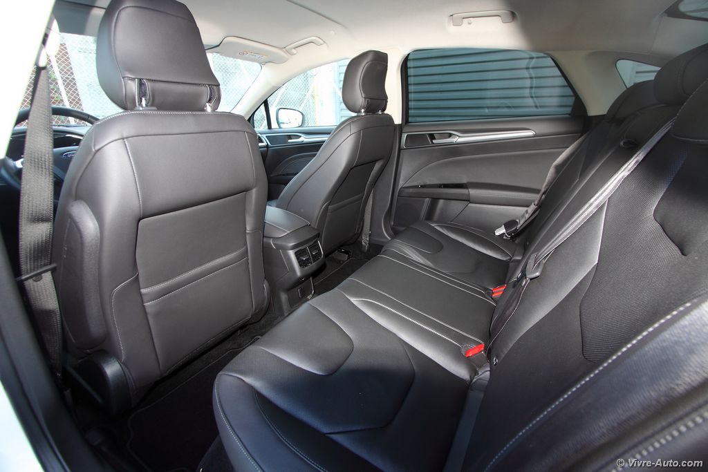 Les passagers arrière sont très bien lotis mais le gros point faible de la Ford Mondeo Hybrid c’est son coffre, c’est bien dommage au vu du gabarit ! Déjà privée de hayon, la berline se contente d’un volume de 383 litres, certes une Peugeot 508 Hybrid4 ne fait guère mieux (347 litres), mais sa forme biscornu et l’absence de plancher plat empêche le chargement de certains objets. De quoi rebuter les familles ou les professionnels, à l’instar des Taxis et VTC. De ce point de vue, le leader japonais de l’hybride fait mieux. Pour le reste, les rangements sont nombreux et les occupants arrière disposent d’une prise 220 V.