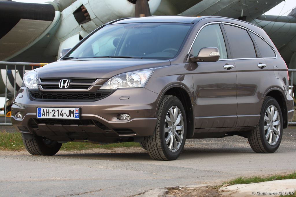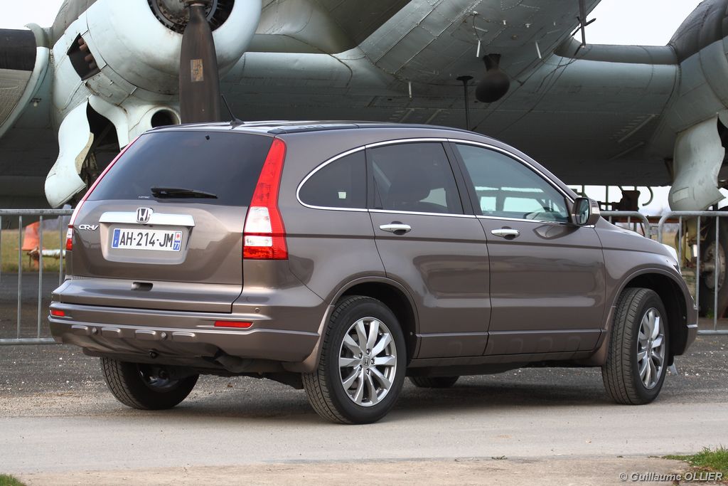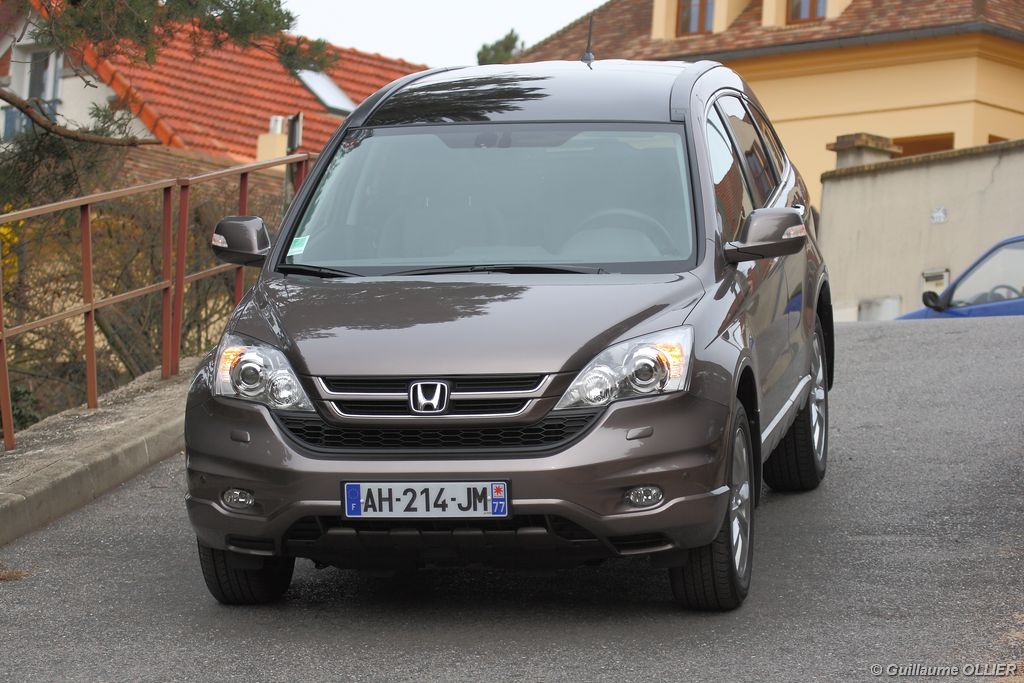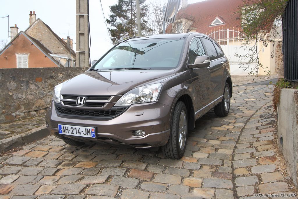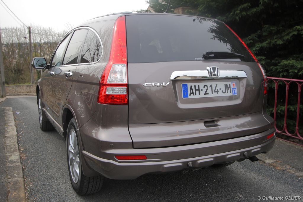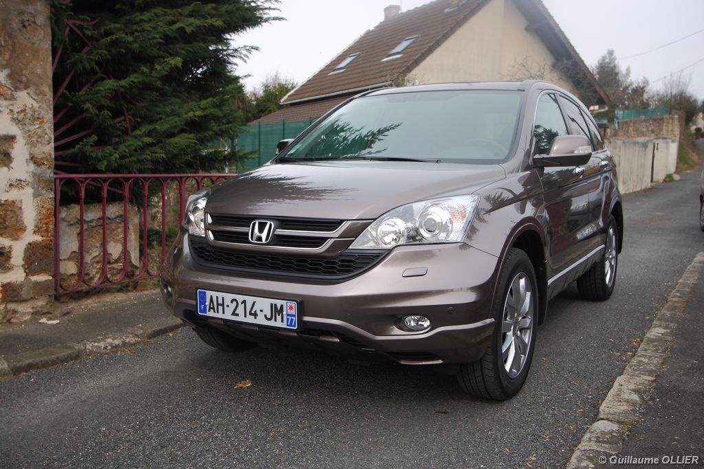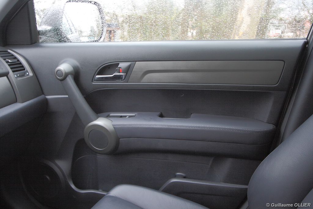 être un plus. Avec cinq rapports, il est tout à fait possible de n’utiliser que les trois premiers, lors de franchissement. Les trains roulants confèrent une bonne stabilité en courbe, mais les pneumatiques Dunlop Grantrek se font entendre lors de rapides virages. La direction quand à elle, manque de précision sur route. Hors des sentiers battus, le CR-V se comporte comme un 4×4, avec sa transmission intégrale. Elle n’est pas permanente, ce qui permet d’économiser un peu de carburant lorsque deux roues motrices suffisent. Avec une garde au sol de 185 mm, il est tout à fait possible d’emprunter des chemins très abimés. Nous avons d’ailleurs été surpris par le confort relevé sur ce type de parcours. Enfin, au chapitre consommation, le SUV nippon est assez gourmand. Avec une moyenne de 9,5l /100 km lors de notre essai, on ne peut pas dire que la sobriété est son point fort. La transmission à convertisseur de couple y est peut-être pour quelque chose. Toutefois, en cycle extra urbain il est possible de descendre sous les 9 litres.