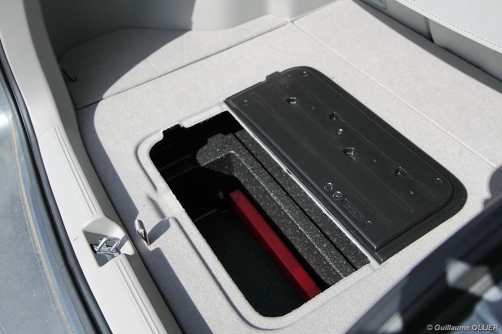 A l’intérieur, les assemblages sont de bonne facture et l’ambiance est originale. La planche de bord est biton avec toute la partie basse en gris clair. Le tableau de bord à deux niveaux sépare l’affichage de la vitesse numérique (tachymètre) et le compte-tours et ses informations. Malheureusement selon les réglages des conducteurs la partie du haut peut-être cachée par le volant, et cela s’avère très gênant. Le volant trois branches multifonctions en cuir surpiqué permet de commander le système audio, le régulateur de vitesse et l’ordinateur de bord. L’ergonomie est plutôt bien étudiée. L’espace à bord est de rigueur, nous sommes bien en présence d’une familiale ! Les places avant comme arrière sont généreuses, seul reproche la faible garde au toit gênera les plus grands. Les rangements sont nombreux et le coffre d’un volume de 408 litres est généreux. La banquette rabattable permet ainsi d’obtenir un total de 584 litres. De plus un compartiment est caché sous le plancher du coffre.