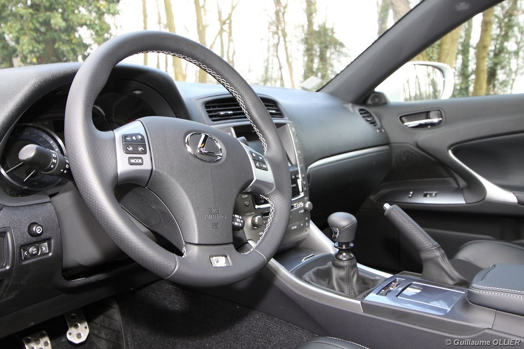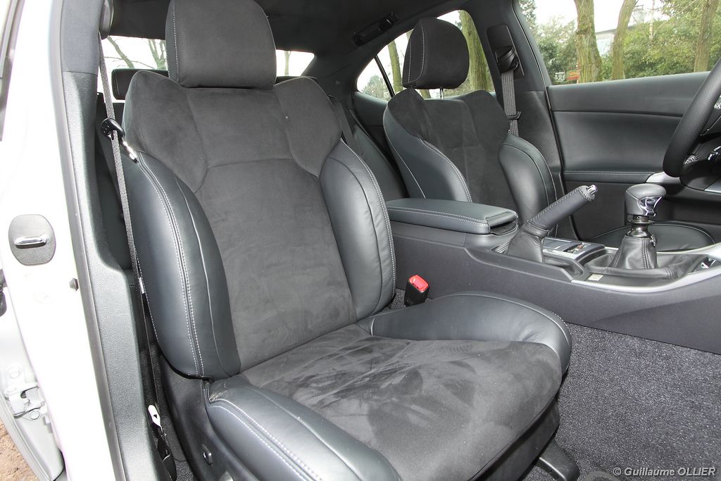 vivre-auto-lexus-is-200d-essai-09Facturé 36 600€ la finition F-Sport dispose de nombreux équipements de série. Au programme : Climatisation automatique, détecteur de pluie et allumage des feux automatique, régulateur de vitesse, Bluetooth, système audio MP3 avec port USB, sièges cuir/Alcantara chauffants, phares bi-xénon, châssis sport, jantes 18 pouces. Pour les clients ne souhaitant pas bénéficier du châssis sport, la finition Pack Exclusive ajoutera les sièges en cuir, le GPS tactile avec caméra de recul, le volant à réglages électriques, le pare-soleil arrière électrique, et le toit ouvrant pour la modique somme de… 43 700€ ! Autant dire que la Lexus IS n’est pas donnée avec ses 150 ch. Elle est garantie 3 ans ou 100 000 km.