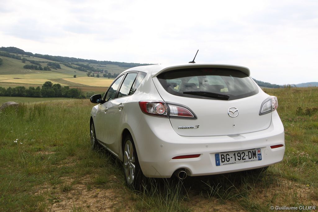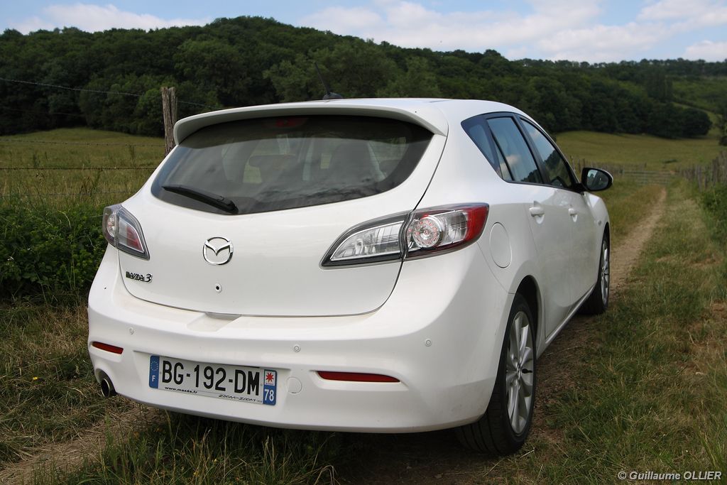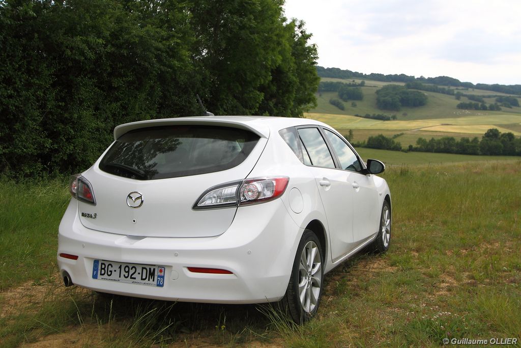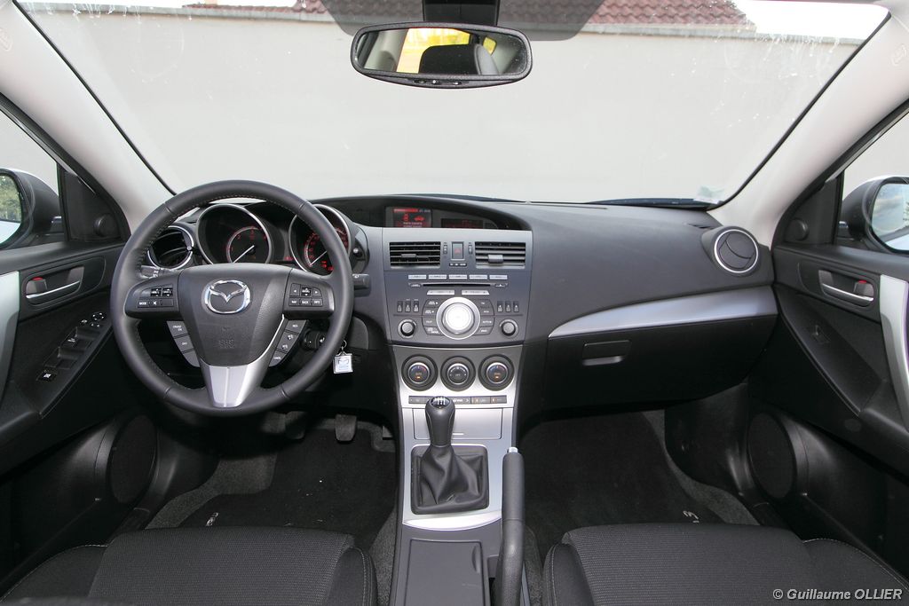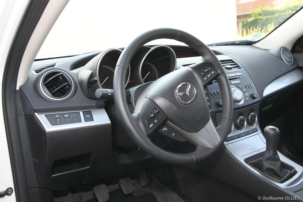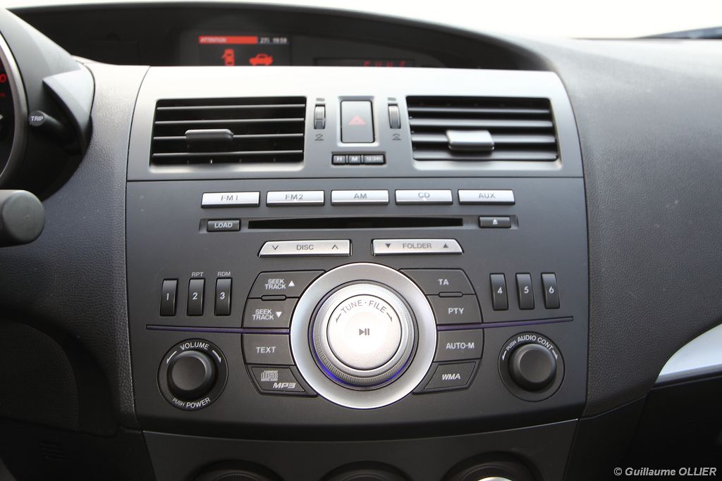 vivre-auto-mazda-3-mz-cd-115-essai-11Mazda a profité de l’arrivée de son évolution moteur pour remanier sa gamme. Un nouveau niveau de finition s’est ajouté au catalogue, baptisé « Confort » il se trouve au début de la gamme avant les finitions respectives « Elégance », « Sport », et « Performance ». Dès ce premier palier, la 3 équipée du 1.6 MZ-CD est facturée 21 650 €. Les équipements proposés sont les suivants : ESP, jantes en alliage 16 pouces, rétroviseurs électriques, régulateur de vitesse, climatisation manuelle, système audio CD/MP3 + prise AUX, volant en cuir réglable en hauteur et profondeur. La finition « Elégance » (+1 200€) ajoute le détecteur de pluie, l’allumage automatique des feux, le radar de stationnement arrière, la climatisation automatique, et les vitres arrière électriques. Pour 1 100€ de plus, le niveau « Sport » vous offre en supplément les jantes alliage 17 pouces, le GPS, l’accoudoir central, et des touches esthétiques comme les feux arrière à LED, un bouclier avant/arrière spécifique, des phares antibrouillard typés sport. Jusque là tout va bien, sauf que lorsque l’on regarde en détail la liste des équipements, on s’aperçoit que la finition « Sport » propose également le kit Bluetooth, et le démarrage sans clé pour toute les motorisations à l’exception du fameux MZ-CD 115… De plus, la finition haute « Performance » qui ajoute les phares bi-xénons, un système hi-fi Bose, un chargeur 6 CD, et le détecteur d’angle mort est malheureusement toujours associé uniquement au moteur essence 2.0 MZR en boîte automatique, un faible pourcentage des ventes en France. C’est bien dommage ! Enfin, nous avons préféré la version « Sport », tout d’abord extérieurement séduisante, puis dotée de nombreux équipements, et à un prix très abordable : 23 950 € ! Avec des rejets de 117 g/km, un bonus de 100€ vous est accordé lors de l’achat.