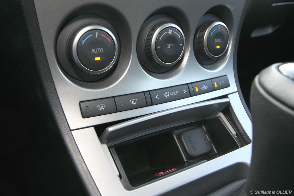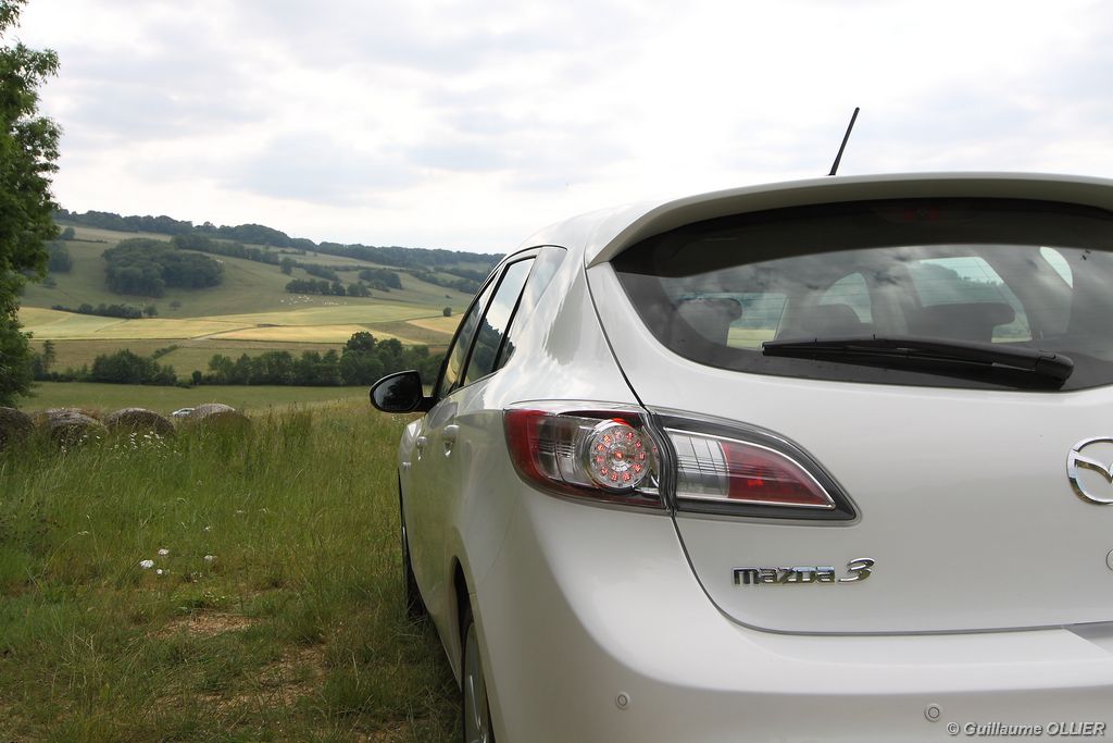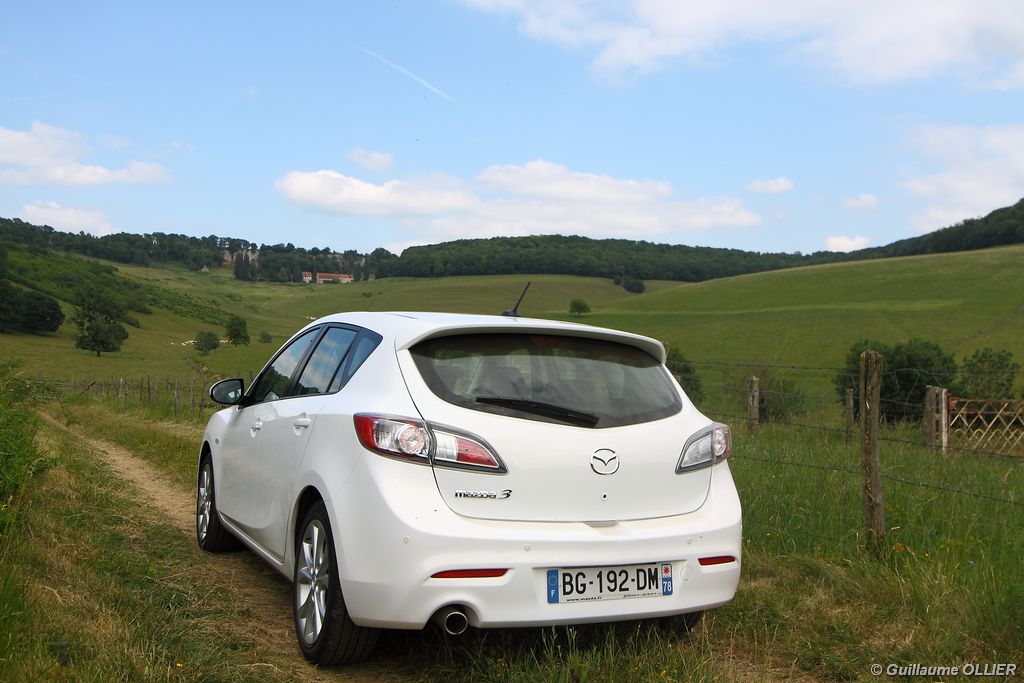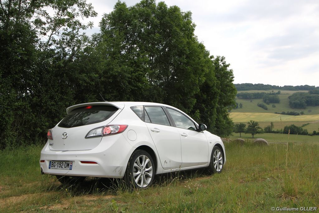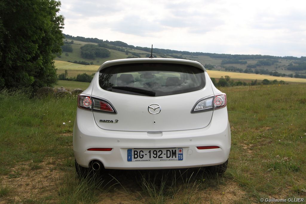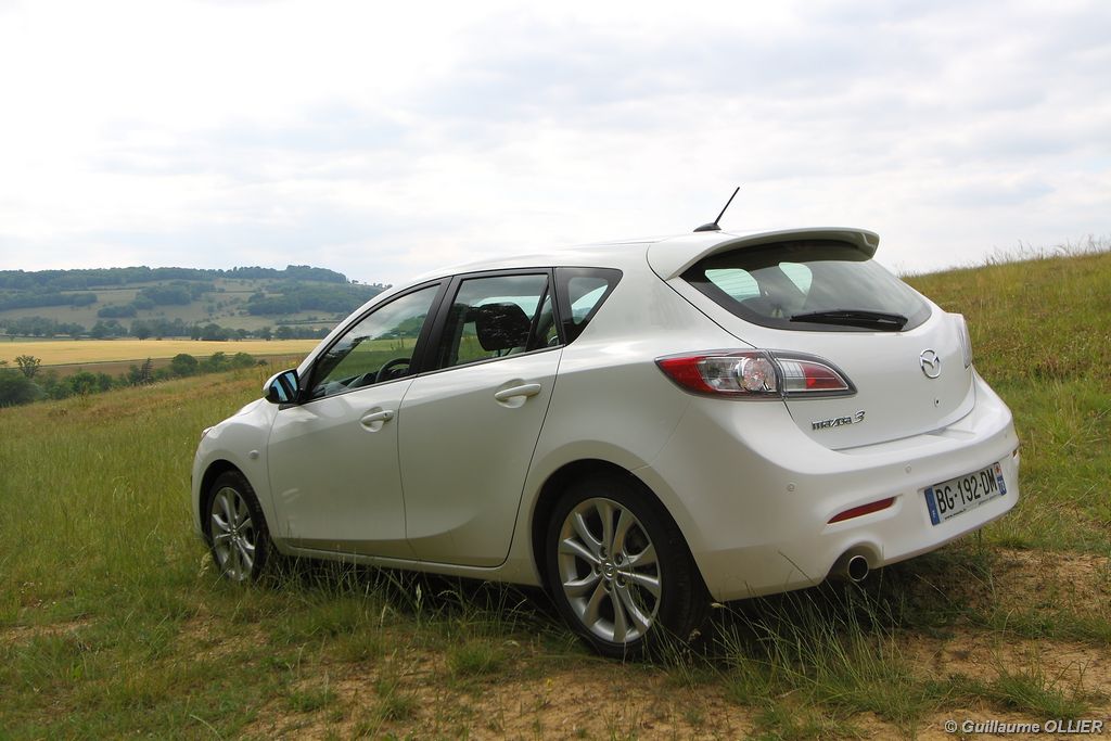 vivre-auto-mazda-3-mz-cd-115-essai-11Mazda a profité de l’arrivée de son évolution moteur pour remanier sa gamme. Un nouveau niveau de finition s’est ajouté au catalogue, baptisé « Confort » il se trouve au début de la gamme avant les finitions respectives « Elégance », « Sport », et « Performance ». Dès ce premier palier, la 3 équipée du 1.6 MZ-CD est facturée 21 650 €. Les équipements proposés sont les suivants : ESP, jantes en alliage 16 pouces, rétroviseurs électriques, régulateur de vitesse, climatisation manuelle, système audio CD/MP3 + prise AUX, volant en cuir réglable en hauteur et profondeur. La finition « Elégance » (+1 200€) ajoute le détecteur de pluie, l’allumage automatique des feux, le radar de stationnement arrière, la climatisation automatique, et les vitres arrière électriques. Pour 1 100€ de plus, le niveau « Sport » vous offre en supplément les jantes alliage 17 pouces, le GPS, l’accoudoir central, et des touches esthétiques comme les feux arrière à LED, un bouclier avant/arrière spécifique, des phares antibrouillard typés sport. Jusque là tout va bien, sauf que lorsque l’on regarde en détail la liste des équipements, on s’aperçoit que la finition « Sport » propose également le kit Bluetooth, et le démarrage sans clé pour toute les motorisations à l’exception du fameux MZ-CD 115… De plus, la finition haute « Performance » qui ajoute les phares bi-xénons, un système hi-fi Bose, un chargeur 6 CD, et le détecteur d’angle mort est malheureusement toujours associé uniquement au moteur essence 2.0 MZR en boîte automatique, un faible pourcentage des ventes en France. C’est bien dommage ! Enfin, nous avons préféré la version « Sport », tout d’abord extérieurement séduisante, puis dotée de nombreux équipements, et à un prix très abordable : 23 950 € ! Avec des rejets de 117 g/km, un bonus de 100€ vous est accordé lors de l’achat.