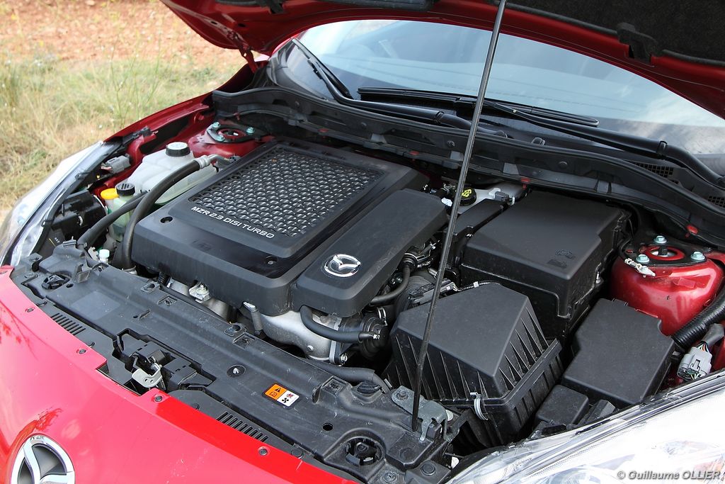 Contact enclenché, on remarque de suite un silence de fonctionnement à bord. Cela se confirme également au démarrage, où le son du moteur parait un peu trop sage compte tenu des performances annoncées. Le DISI 2,3 l est un moteur essence turbo à injection directe qui développe 260 ch à 5 500 tr/mn. Son couple de 380 Nm est disponible dès 3 000 tr/mn. Le 0 à 100 km/h est annoncé à 6,1 secondes, et la vitesse maximale de 250 km/h (limitée électroniquement). Il s’agit donc du même bloc de l’ancienne MPS mais avec quelques améliorations afin d’être au goût du jour face aux normes. En pratique cette motorisation est prête à répondre à la moindre sollicitation de la pédale d’accélérateur. En dessous des 3 000 tr/mn la MPS reste sage, appréciable en ville notamment. Dès lors qu’on monte plus haut, le moteur se déchaîne et grimpe rapidement dans les tours, mais il s’essouffle au dessus des 5 500 tr/mn (zone rouge à 6 500 tr/mn). Les remontées de couple se font sentir dans la direction lors d’une conduite dynamique, il est donc important de bien tenir le volant lors d’accélérations soutenues. Autant la direction est précise, autant il faut se méfier en sortie de courbe car la puissance transmise aux seules roues avant peut jouer des tours. Cette dernière se réalise à l’aide d’une boîte de vitesse manuelle à six rapports, plutôt bien guidés. Les étagement sont longs afin de répondre aux normes Euro V, avec un rejet de CO² de 224 g/km. Le freinage est quant à lui très efficace et met tout de suite en confiance le conducteur. Le roulis est maitrisé et le confort est au rendez-vous. Globalement cette compacte reste collée à la route et les aides électroniques veillent en cas d’excès (Anti-patinage TCS, ABS, ESP et contrôle dynamique de stabilité DSC). Lors de notre essai nous avons obtenu une consommation moyenne de 9,5 l/100 km en cycle mixte. Sur autoroute comptez 8 l/100 km au moins.