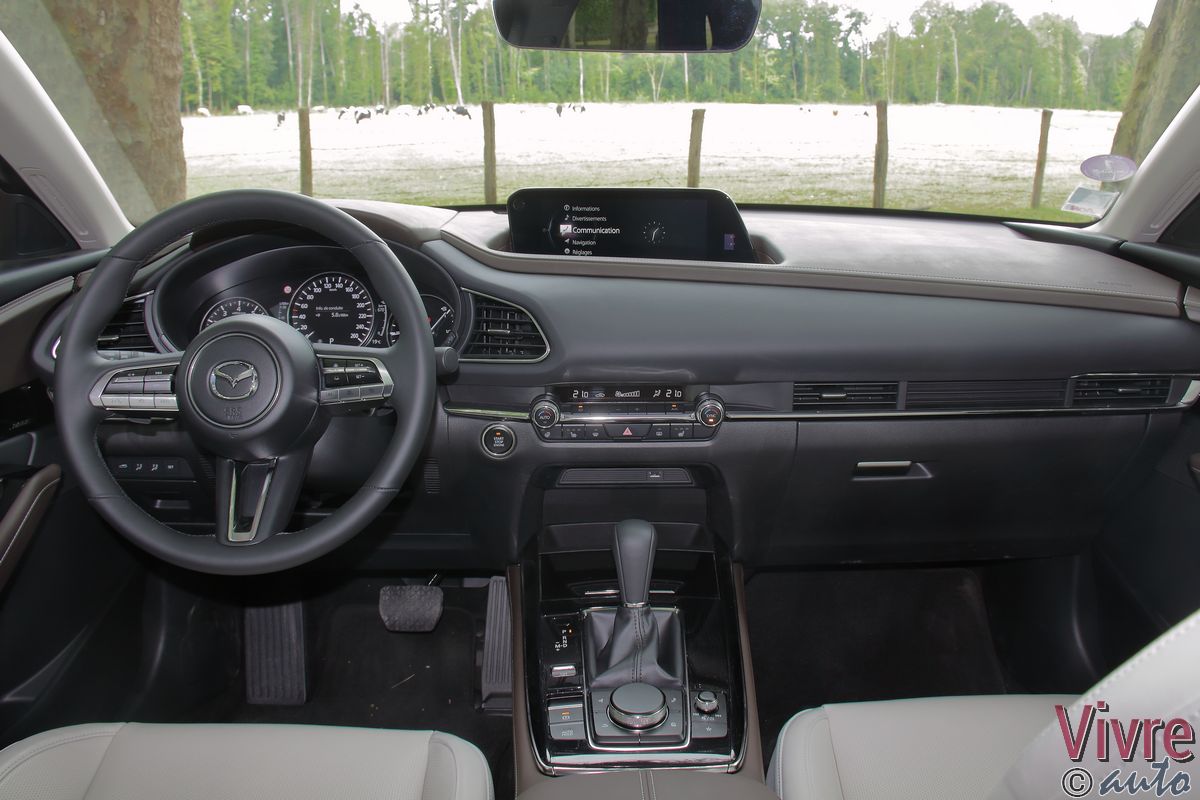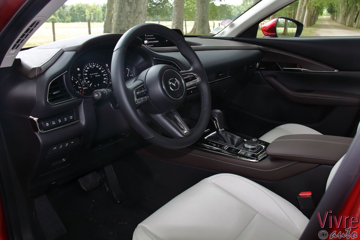 En ouvrant la porte, on pénètre dans un univers qui n’a plus rien à envier aux ténors du premium allemand. La planche de bord est un modèle de pureté et d’horizontalité. Mazda a fait le choix de matériaux nobles : des plastiques moussés à cœur, du cuir surpiqué et des assemblages millimétrés.