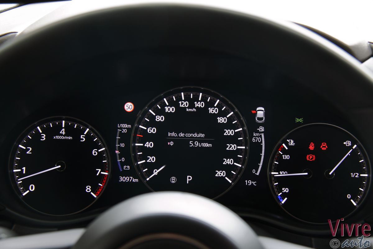 À la conduite, oubliez l’effet « coup de pied aux fesses » des moteurs turbo concurrents. Le Skyactiv-X est d’une linéarité absolue. Il est souple, d’un silence de fonctionnement remarquable à bas régime et monte en puissance de manière très progressive. Pour doubler, il ne faut pas hésiter à tomber un ou deux rapports de l’excellente boîte manuelle au guidage ferme et précis (un régal !).