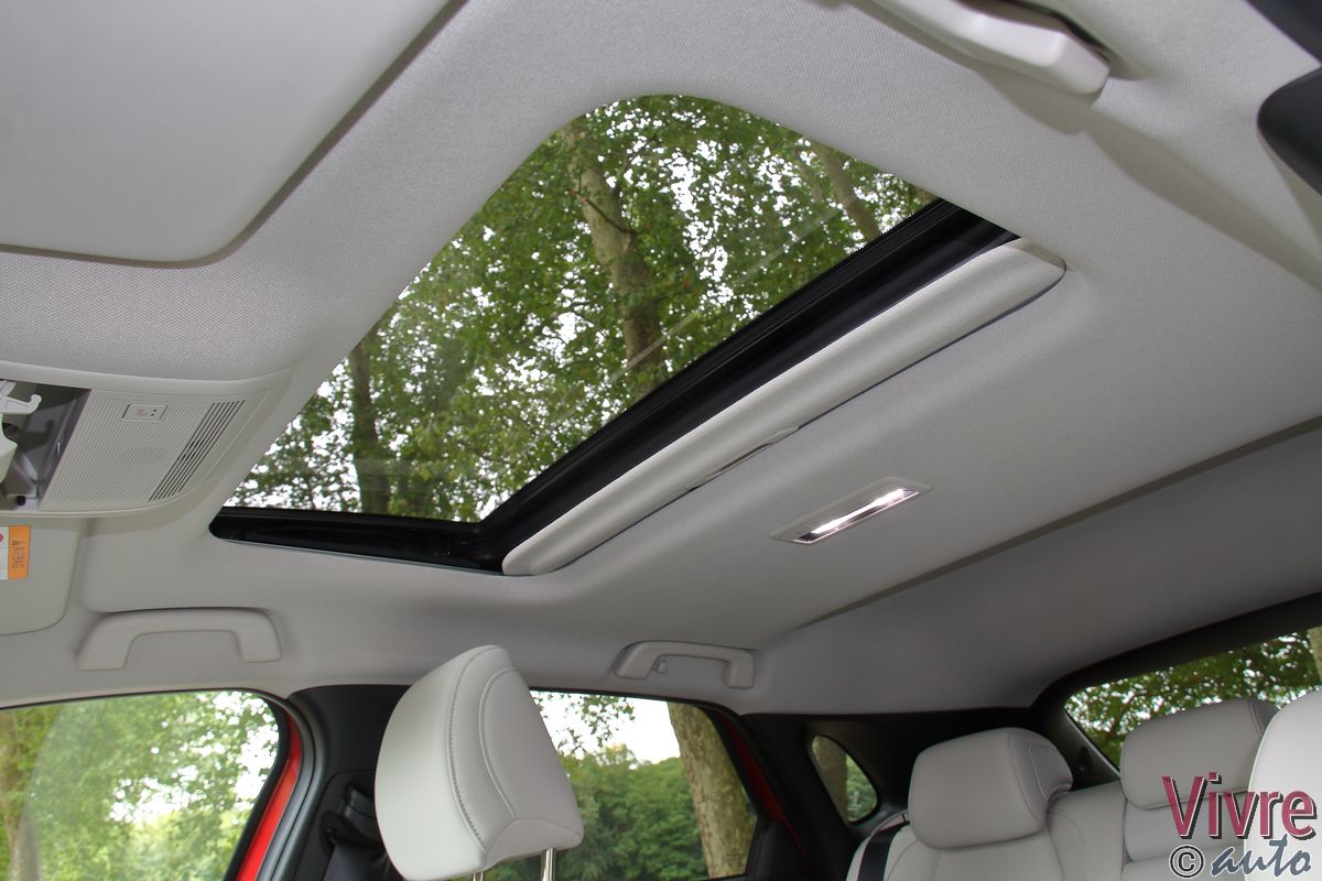 À l’arrière, l’accueil est correct pour deux adultes, même si la ligne de toit fuyante et la surface vitrée réduite peuvent donner une légère sensation de confinement. Le coffre, avec ses 430 litres, se situe dans la moyenne basse du segment (un Volkswagen T-Roc fait mieux), mais son seuil de chargement bas le rend très exploitable au quotidien.