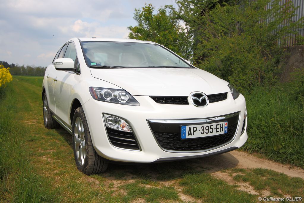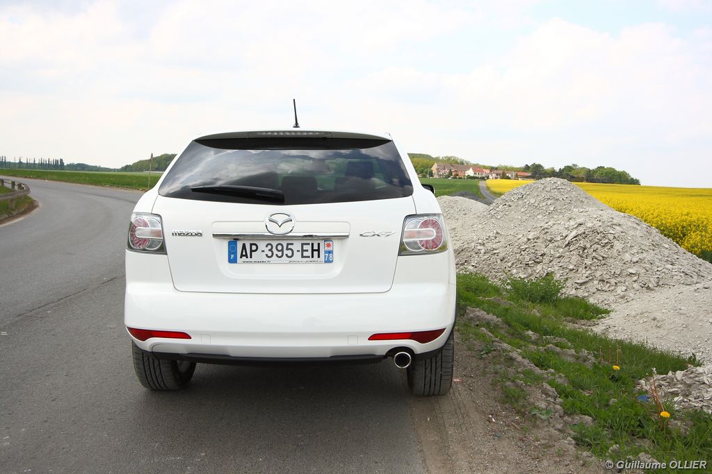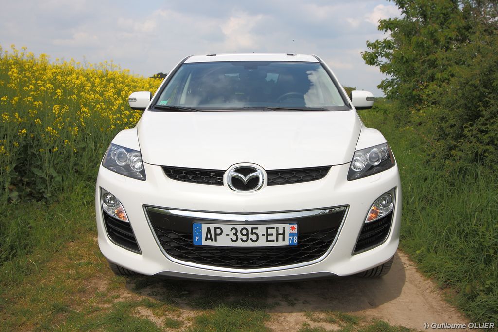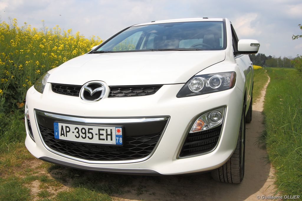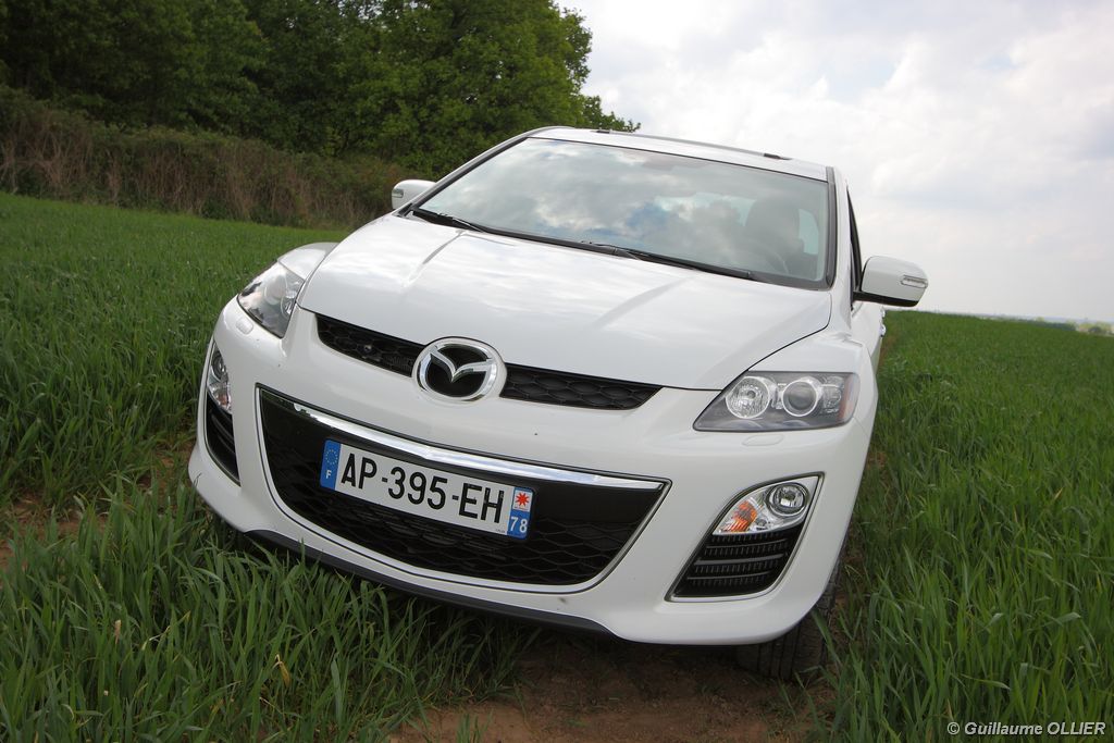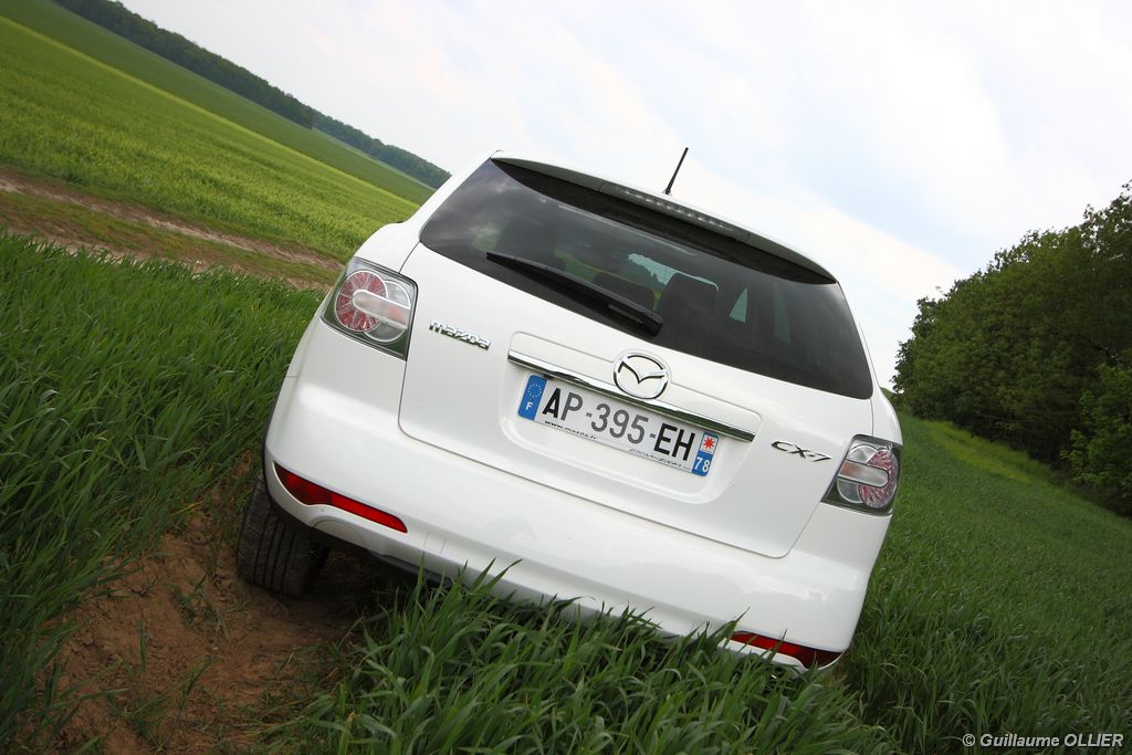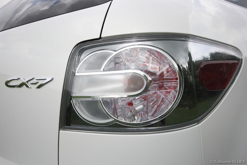 Le MZR-CD est enfin arrivé sur le CX-7 ! Ce moteur Diesel à injection directe par rampe commune d’une cylindrée de 2 184 cm3 développe 173 ch à 3 500 tr/mn. Il est équipé d’un filtre à particules de nouvelle génération et répond à la norme Euro V. Même si l’insonorisation est bonne à l’intérieur, le moteur s’avère quand même bruyant à froid et à haut régime. Une fois lancée la mécanique offre un très bon agrément vers 2 000 tr/mn, en dessous le poids du véhicule se ressent. Les performances sont au rendez-vous et satisfaisante pour une voiture à usage principalement familiale. La boîte de vitesse est très bien étagée, mais les rapports sont trop fermes. Au passage, nous aurions aimé voir une transmission automatique au catalogue, comme sur la plupart des SUV. La direction életro-hydraulique est légère, très agréable et précise. Elle nous fait oublier les 1,8 tonne du CX-7 ! Avec son châssis dynamique, il est vraiment plaisant de conduire ce SUV. Les trains roulants sont rigoureux, et nous retrouvons une tenue de cap et une adhérence plutôt conséquente. Malgré une garde au sol de 200 mm le roulis n’est presque pas marqué. Le freinage est endurant avec des freins à disque ventilés à l’avant de 320 mm et à l’arrière de 325 mm. Doté de la transmission intégrale avec répartition active du couple, le passage en quatre roues motrices se déroule automatiquement si les conditions l’exigent. Le franchissement n’est bien évidemment pas envisageable pour autant. Les suspensions sont fermes mais bien amorties. La consommation mixte de notre essai est de 9,5 l/100 km pour un parcours mixte. Sur route, il est possible de descendre en dessous de 8 l/100 km mais en ville, il faut s’attendre à une moyenne oscillant entre 9 l et 10 l/100 km.