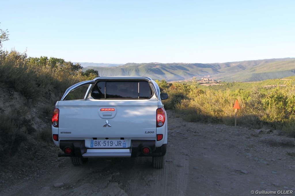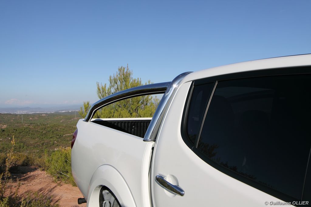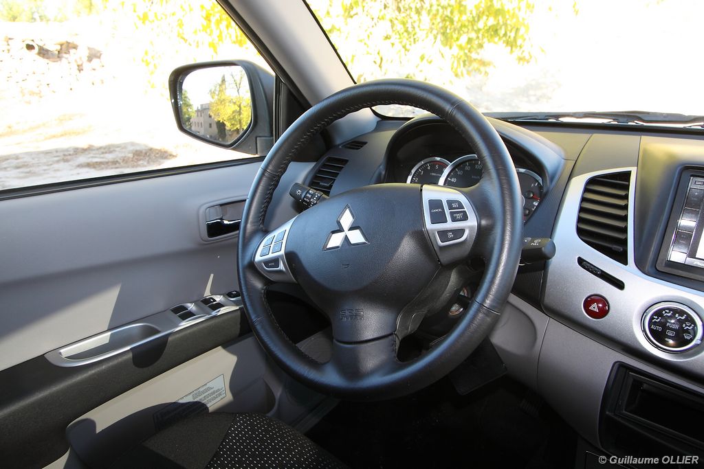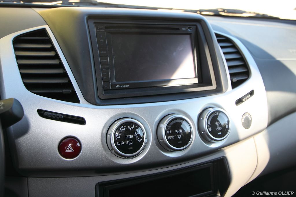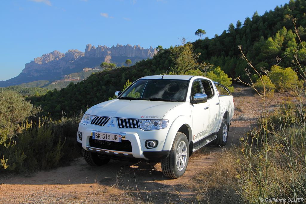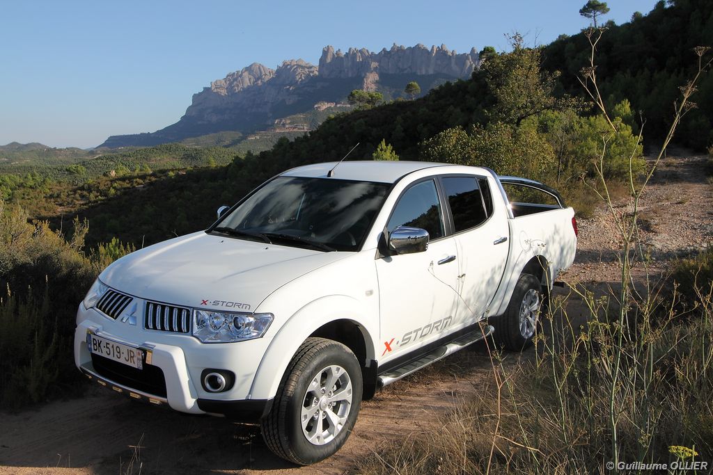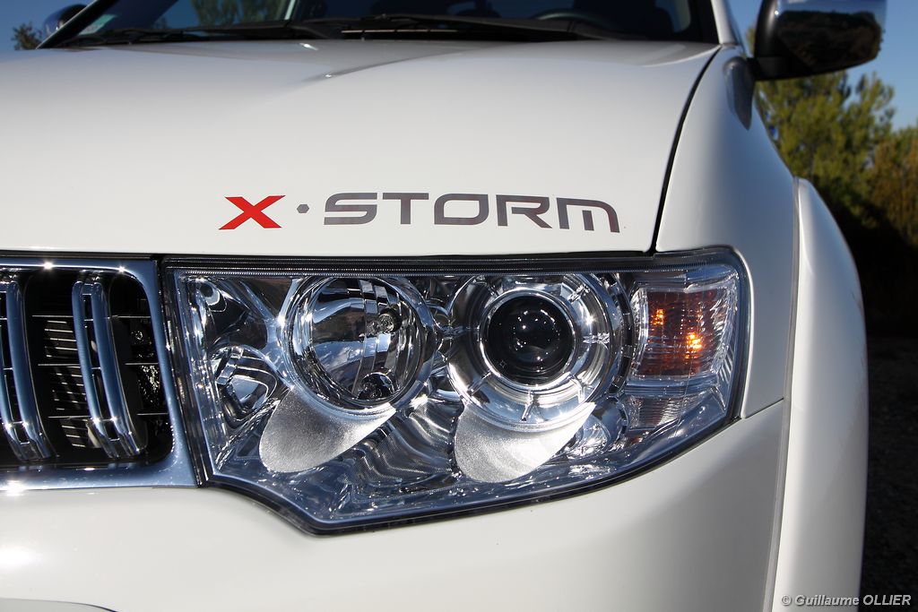 L200 XStorm est produit en Thaïlande. La finition et les assemblages sont bons, l’intérieur reste tout de même très typé « utilitaire », mais robuste. L’ergonomie est bien étudiée pour ce qui est des commandes de base, pour le reste l’écran tactile oblige le conducteur à quitter la route des yeux… Les équipements sont complets, climatisation automatique, allumage automatique des feux, détecteur de pluie, régulateur de vitesse, radio CD compatible MP3 avec prise Jack, GPS, Bluetooth, radars de recul… et même une lunette arrière rétractable électriquement pour le confort des passagers arrière ! Au chapitre habitabilité, justement, on ne pourra pas reprocher au L200 de manquer d’espace. La hauteur sous le plafond est importante, et les occupants ont de la place pour les coudes et les jambes. Côté rangement, il y a de quoi faire. Sous le siège passager, dans les portières avant et arrière avec porte-bouteille, porte-gobelets à l’avant, aumônières au dos des sièges, porte-lunette, et divers compartiments.