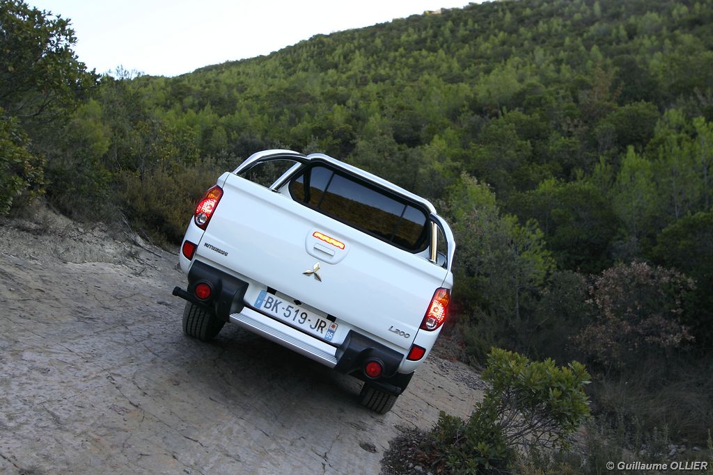Une boîte de transmission baptisée « Super Select » propose quatre modes. Le premier 2H pour les routes en bonne état (propulsion simple) et le second, 4H lorsque la chaussée est dégradée par la pluie ou la neige par exemple (répartition 50/50). Il est possible de passer du premier au deuxième jusqu’à 100 km/h. Viennent ensuite deux autres modes, 2L et 4L, utile pour le franchissement avec des vitesses courtes. Sur ce terrain le L200 s’est