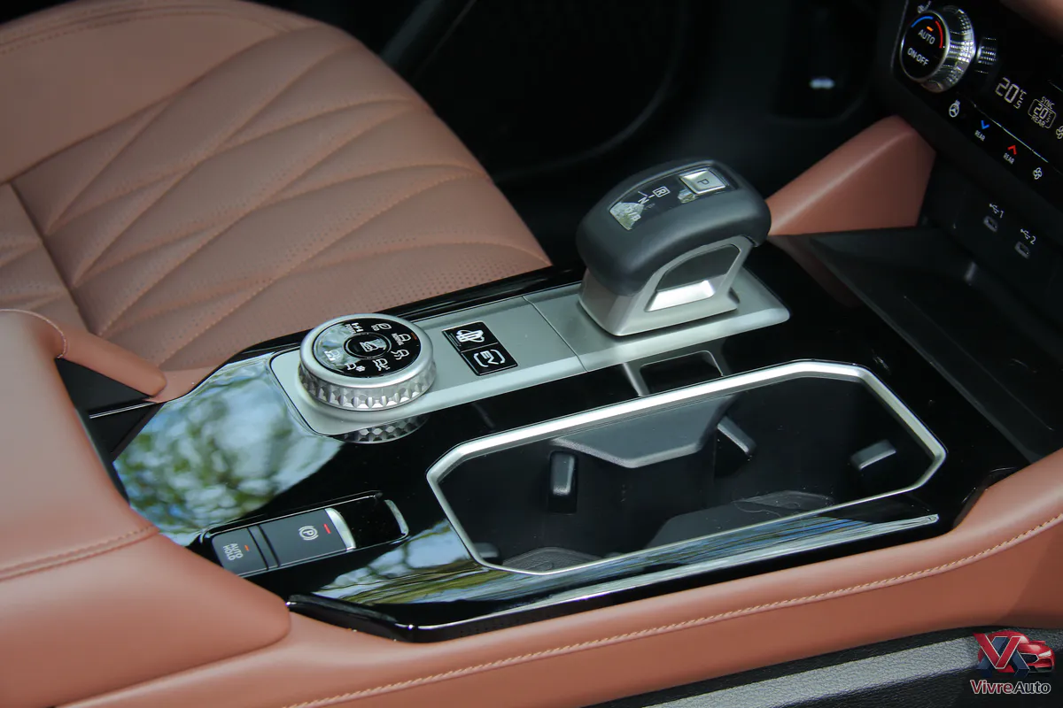 Juste en dessous, une molette permet de choisir ses modes de roulage pour agir sur la transmission intégrale. Si les modes de puissance (Power, Eco, Normal) sont classiques, nous avons été impressionnés par les modes de traction. En testant le mode « Gravel » (gravier) sur des routes boueuses, l’Outlander a prouvé son efficacité. Ce n’est pas un franchisseur extrême, sa garde au sol et sa carrosserie ne le permettent pas, mais la transmission fait le job. On sent que ça glisse sous les roues, mais le véhicule suit fidèlement la trajectoire demandée. C’est un allié de poids pour ceux qui vivent à la montagne ou sous des climats difficiles.
