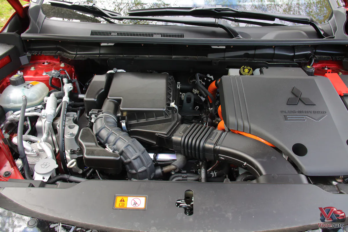 Techniquement, l’Outlander PHEV dispose d’un système hybride qui repose sur un 2,4 litres cycle Atkinson servant principalement de générateur, mais pouvant aussi entraîner les roues à vitesse élevée. Il est associé à deux moteurs électriques développant respectivement 116 ch à l’avant et 136 ch à l’arrière, soit un gain de 40 % par rapport à la précédente génération. Selon le fonctionnement du système, on peut alors disposer d’une puissance de 302 ch (ou 306 ch selon les mesures) et d’un couple généreux de 450 Nm. Mais l’atout majeur reste le système S-AWC : une transmission intégrale permanente gérée par l’électronique, sans aucun lien mécanique entre les essieux, ce qui garantit une motricité instantanée. Pour alimenter l’ensemble, Mitsubishi a installé une batterie de 22,7 kWh (brute), pour environ 20 kWh nets, une capacité en hausse de 50 %. Enfin, l’Outlander peut tracter une remorque freinée jusqu’à 1 600 kg.