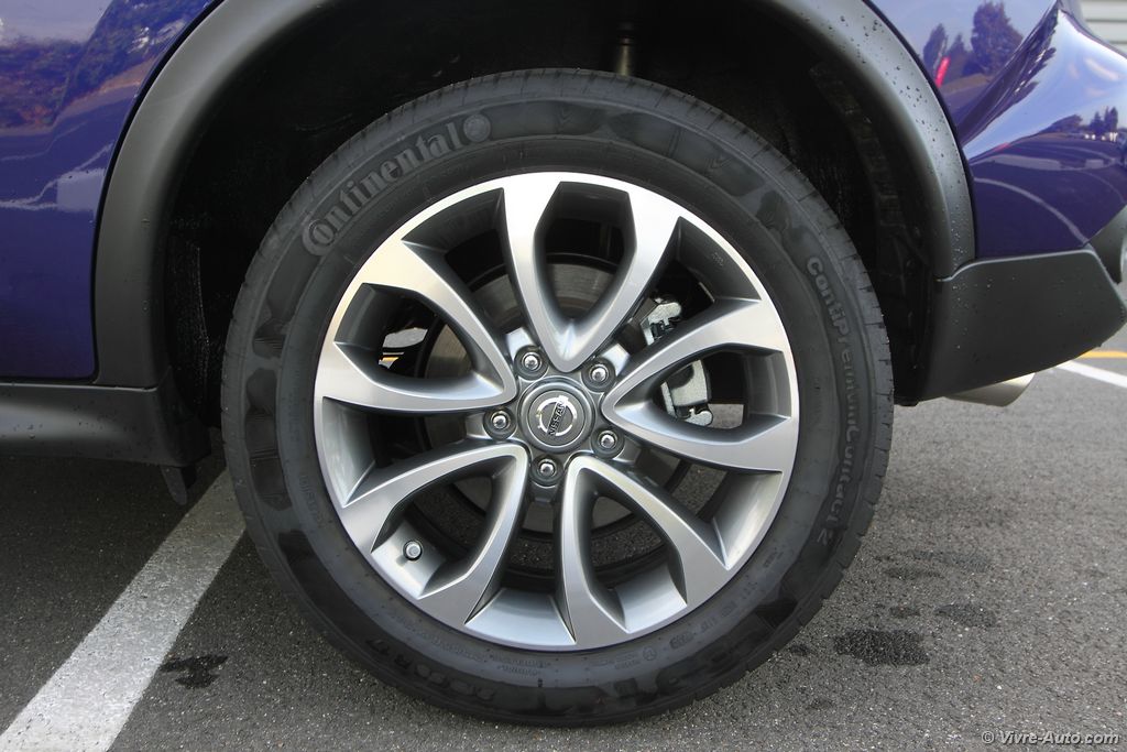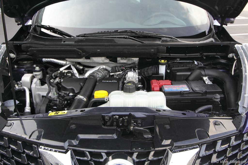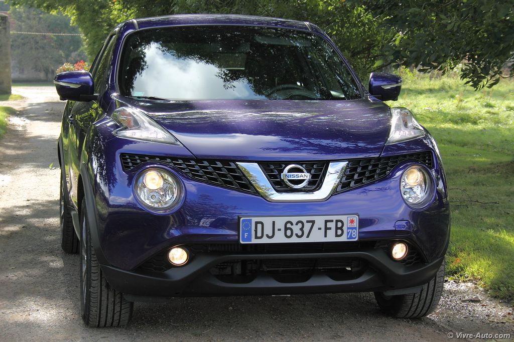 Le Nissan Juke est proposé avec trois moteurs essences DIG-T 115 ch, 1.6L 117 ch (BVA), DIG-T 190 ch et un seul Diesel, le 1.5L dCi 110 ch. Rappelons que le Juke est également disponible en quatre roues motrices mais seulement avec le DIG-T 190 ch. Nous avons pris le volant avec le bloc Diesel, qui représente la majeur partie des ventes. Présent sur plusieurs véhicules chez Nissan et Renault, il nous a convaincu à bord du Juke. Suffisamment puissant pour tracter le crossover, il est agréable au quotidien en ville. Assez compact, notre Juke se faufile partout mais avec une visibilité réduite à l’arrière. Dommage que les deux premiers niveaux de finitions ne disposent et ne proposent pas d’aide au stationnement arrière. Associé à une boîte de vitesse mécanique à six rapports au bon étagement, le 1,5L dCi s’est montré plutôt sobre durant notre essai avec une consommation moyenne aux alentours des 6 l/100 km. Son usage n’est pas seulement limité à la ville, sur route, son confort et son insonorisation sont appréciables. Certes, avec 110 ch sous la pédale, ce n’est pas un foudre de guerre (0 à 100 km/h en 11.2 secondes) mais le Juke peut sortir de la ville sans problème. Le bon comportement routier est toujours de la partie avec un châssis très sain et un freinage efficace.