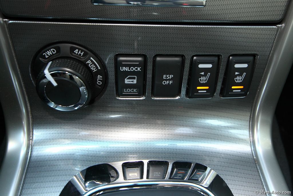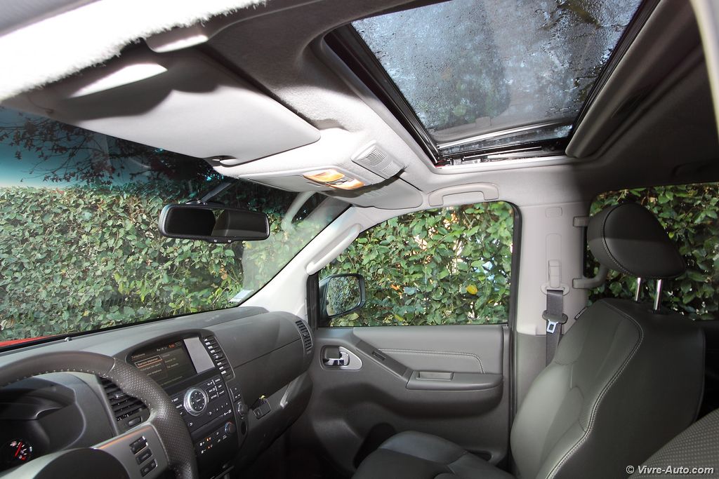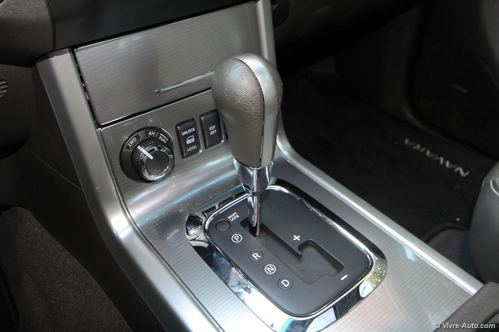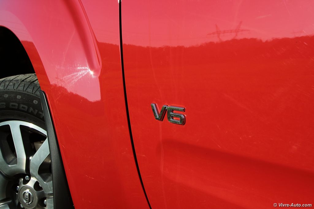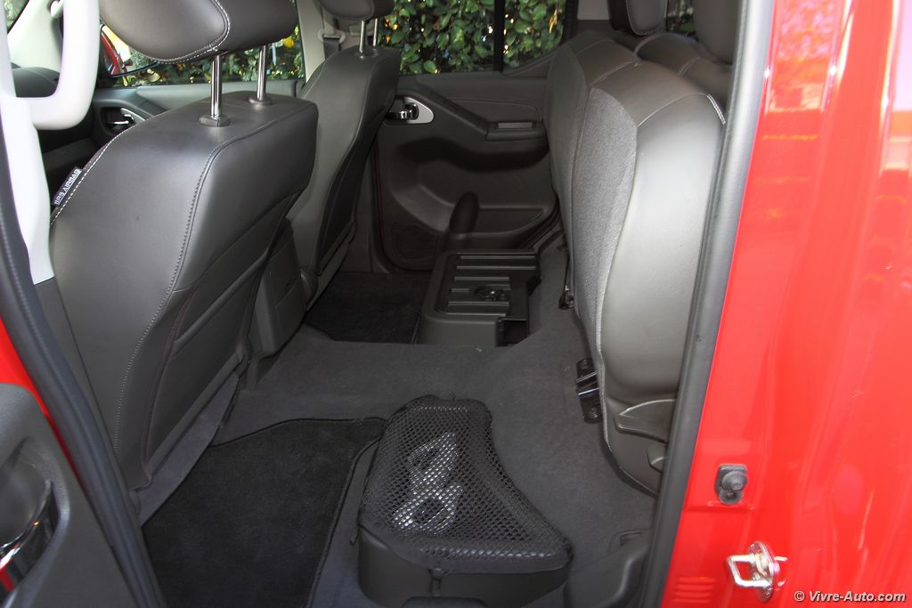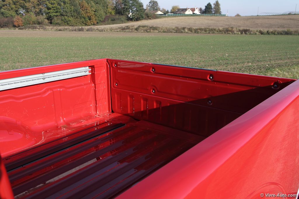 modèle V6, les sièges sont particulièrement confortables. La position de conduite est idéal, en hauteur, on regrette cependant que le volant ne soit pas réglable en profondeur… La liste des équipements est très longue avec beaucoup de systèmes absents des pick-up habituels. On citera par exemple la climatisation bi-zone, la caméra de recul, les sièges chauffants, le GPS, le système Hifi Bose, un lecteur DVD, le Bluetooth, le régulateur de vitesse, le toit ouvrant… Mention spéciale aussi pour les rangements qui sont relativement nombreux, bacs de porte généreux, double boîte à gants, logement sous la banquette…