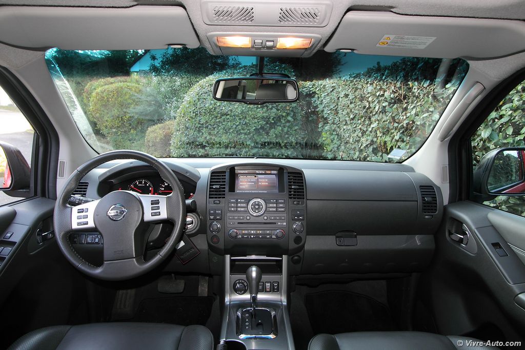 Dans le monde des pick-up, on y fait vite le tour. La plupart sont japonais comme les Mazda BT50, Mitsubishi L200, Toyota Hillux ou américain avec le Ford Ranger. Nissan fait parti des leaders avec son Navara. Ressemblant fortement au SUV Pathfinder, à la différence qu’il est plus long, il a surtout une toute autre fonction. Comme ses rivaux, il est disponible en plusieurs configurations, basique, simple ou double cabine. Nous nous sommes appropriés cette dernière version, qui correspond plutôt à un usage privé que professionnel. Nous nous attarderons pas sur son look qui, à notre goût est très réussi mettant bien en avant le côté robuste de la chose. A bord, la présentation général nous éloigne beaucoup d’un pick-up traditionnel. La sellerie cuir est de série sur le