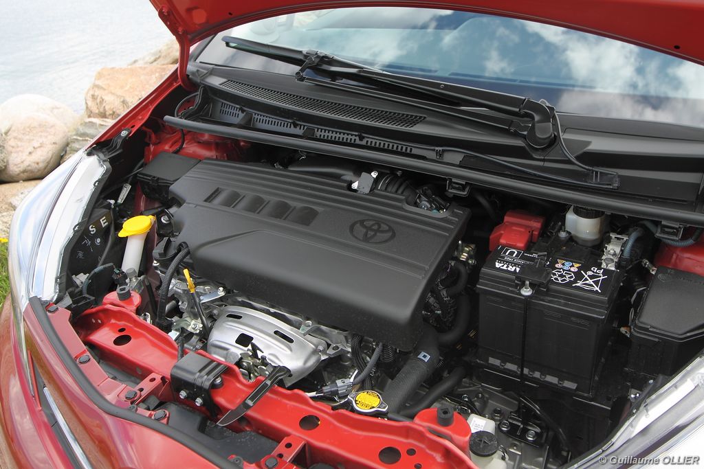 vivre-auto-toyota-yaris-2011-essai-03Trois moteurs, tous issus de la précédente génération, sont proposés sous le capot de la nouvelle Yaris. Deux essences, un 3 cylindres 1,0 l de 69 ch, un 4 cylindres de 1,33 l, et un Diesel 1,4 l de 90 ch. Nous avons pris la route avec ces deux derniers blocs. Le 1,33 l VVT-i développe une puissance de 99 ch à 6 000 tr/min, et un couple de 125 Nm à 4 000 tr/min. En Diesel, le 1.4 D-4D développe 90 ch à 4000 tr/min, et un couple de 205 Nm disponible de 1 800 à 2 800 tr/min. Dans les deux cas, la transmission manuelle compte 6 rapports. Le moteur Diesel peut accueillir une boîte robotisée tandis que le moteur essence 1,33 l peut être couplé à une boîte CVT, que nous vous déconseillons si vous souhaitez rouler hors agglomération à cause de son niveau sonore. Le 1,33 l VVT-i se montre à la fois souple et dynamique et nous a satisfait sur tous les types de parcours. Même si le 1,4 D-4D offre plus de couple, les performances ne sont pas spécialement plus importantes, avec un 0 à 100 km/h abattue en 10,6 s contre 11,7 s pour le VVT-i. Notons au passage que le poids de la voiture a diminué de 20 grammes par rapport à l’ancien modèle. Le moteur essence s’est montré très sobre, avec une moyenne oscillant aux alentours de 6l/100 km sur un parcours mixte. Notre modèle d’essai ne disposait pas encore du Stop&Start qui équipera en série les Yaris dotées de cette motorisation. Le D-4D est un peu plus sobre avec une moyenne de 5l/100 km mais son niveau sonore est plus important. De plus la marque nippone a décidé de dispenser ce moteur de Stop&Sart et du régulateur de vitesse, c’est bien dommage… La Yaris 1,33 l VVT-i prend l’avantage en raison de ses accélérations sympathiques, de sa sonorité plus discrète et de ses équipements en plus. En ville, la petite citadine se manœuvre aisément avec une direction précise et la visibilité est globalement bonne. Toyota annonce un rayon de braquage record de 4,7 mètres en jantes 14 pouces. Cependant, notre modèle d’essai chaussé de jantes 16 pouces ne nous a pas permis de remarquer cette performance. Sur route, dès lors que vous dépassez les 120 km/h, des bruits d’air se manifestent, notamment au niveau des rétroviseurs. Dommage, d’autant plus que nous n’avons décelé aucun bruit parasite pendant notre essai. Enfin, au chapitre sécurité, en plus de son obtention de 5 étoiles aux tests EURO NCAP, la Yaris dispose d’un châssis sain, qui offre une bonne stabilité en virage, tout en privilégiant le confort de suspension. L’ESP est livré de série sur toute la gamme.