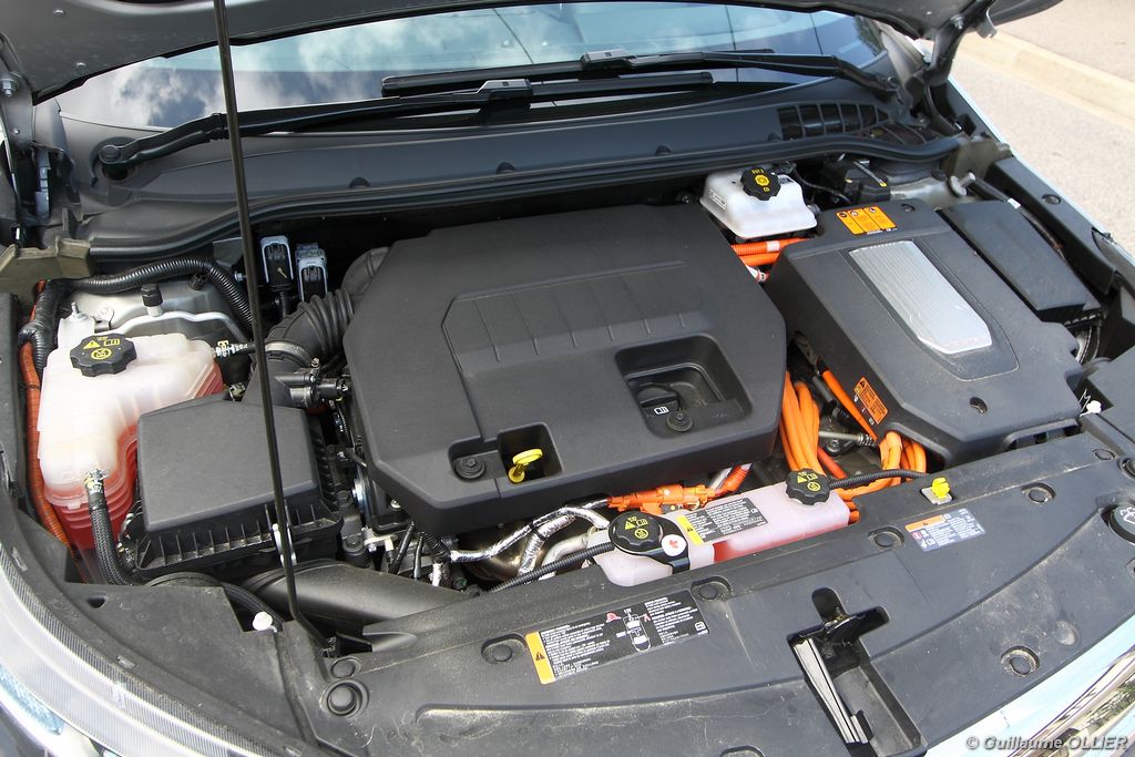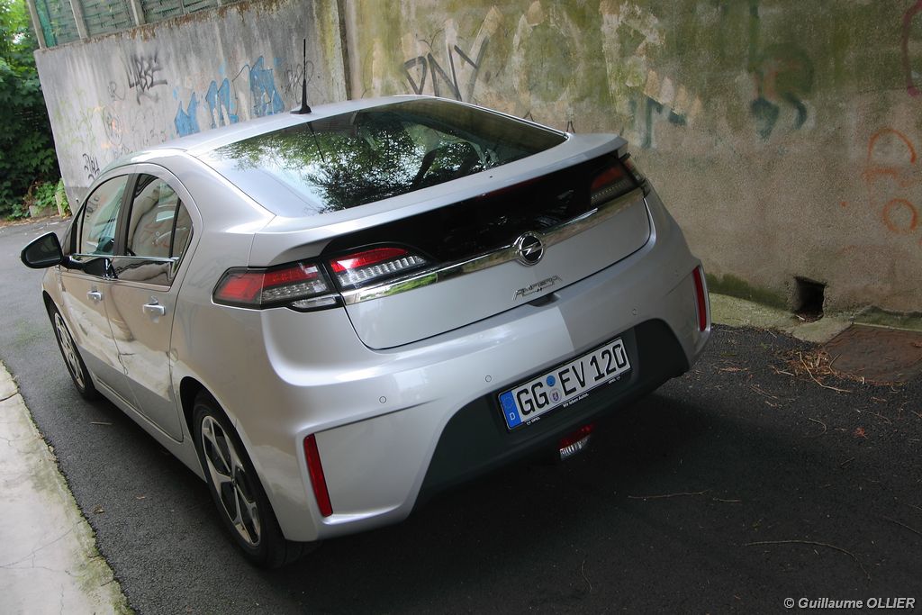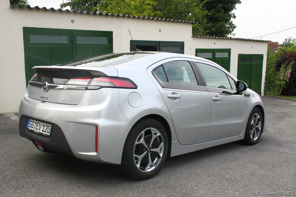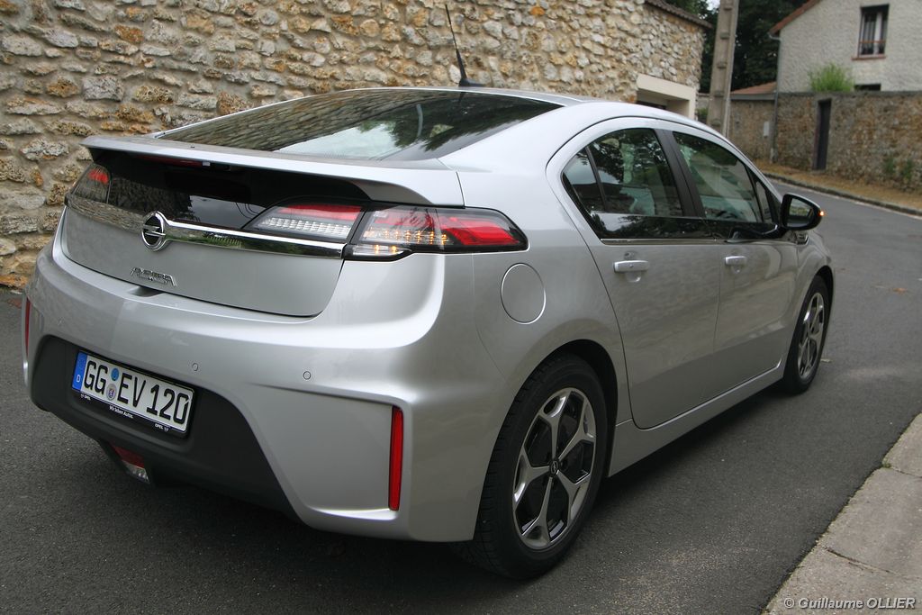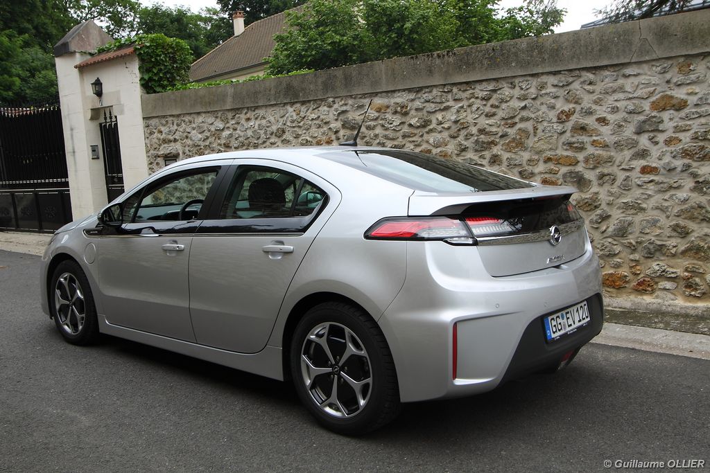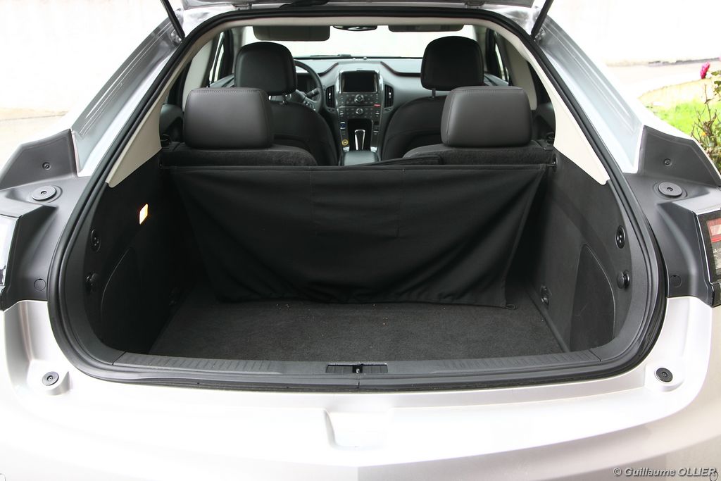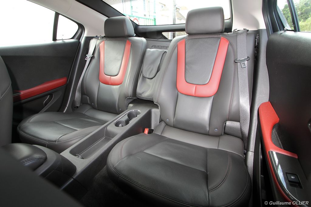 A vivre, l’Ampera est plutôt plaisante. Niveau équipement, elle possède tout d’une grande, caméra de recul, sièges avant chauffants, système HiFi Bose, GPS… L’écran tactile de 7 pouces est une réussite et sa manipulation est facile, tout comme la navigation. Seul reproche l’ergonomie de la console centrale n’est pas des plus simples avec la profusion de boutons tactiles. Les batteries impactent bien sûr l’habitabilité, ôtant une cinquième place à l’arrière mais aussi en réduisant le volume du coffre. Ce dernier offre 310 litres de chargement ce qui n’est pas un exploit pour une berline. Mention spéciale pour le cache bagage très décevant, qui se résume à un morceau de tissu non escamotable.