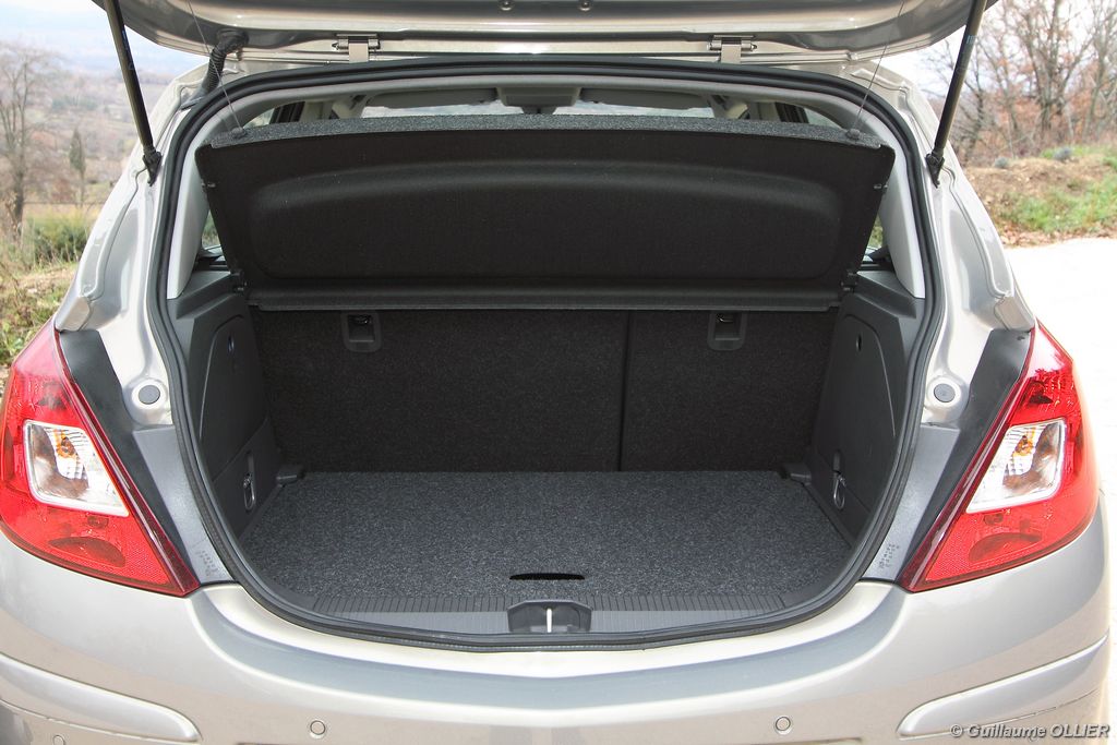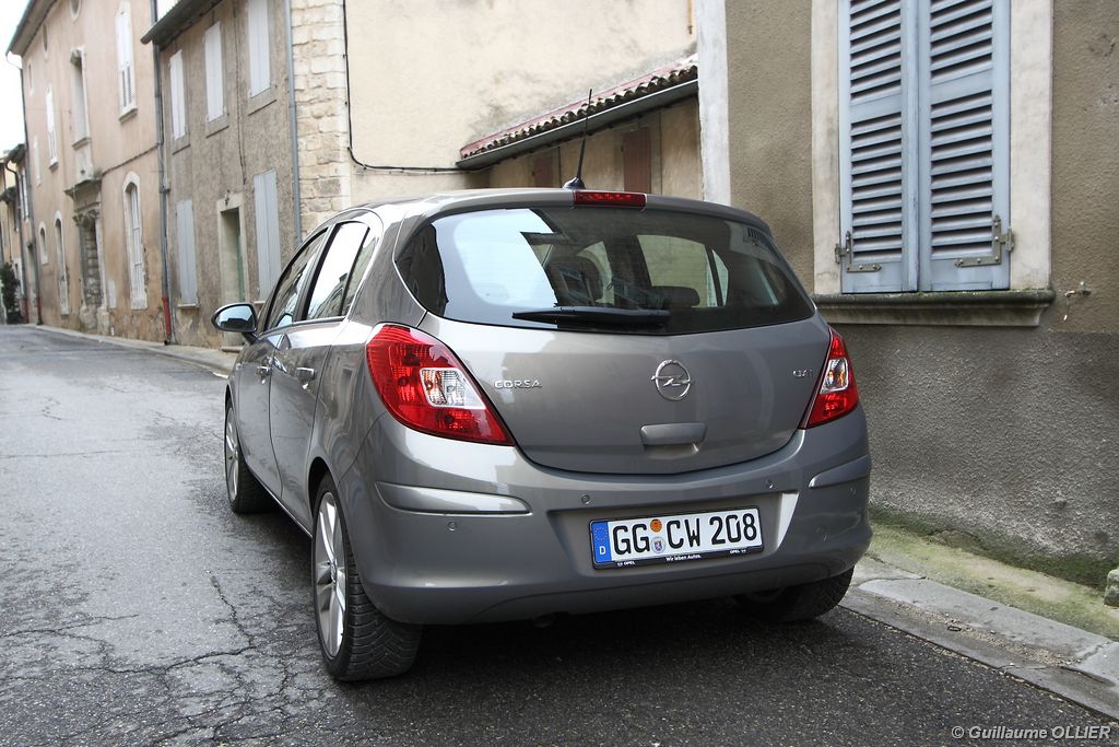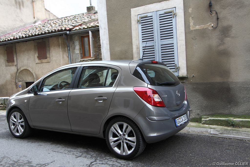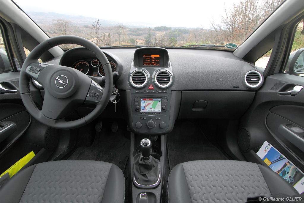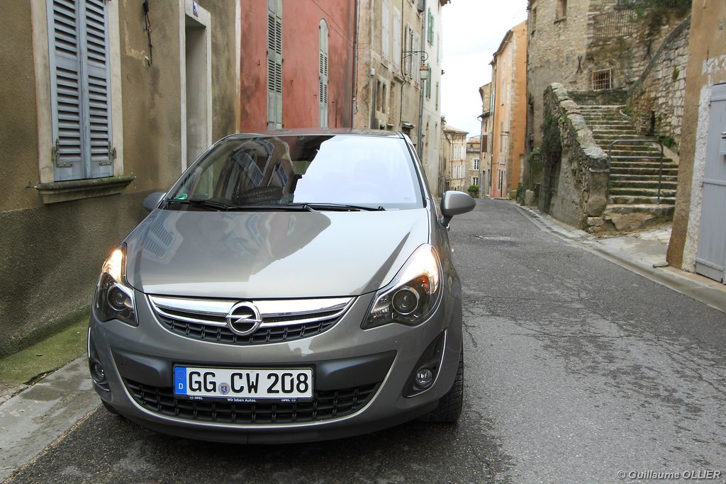 La gamme de motorisations disponibles sur la Corsa comprend 4 moteurs essence de 65 à 192 ch, et 3 moteurs Diesel de 75 à 130 ch. Nous avons essayé le 1.3 CDTi 95 ch puisqu’il est dorénavant équipé d’un système Start/Stop réduisant de 8,7% la consommation. Opel annonce ainsi une consommation mixte de 3,5l/100 km pour des rejets de CO² de 94 g. Confortable et agréable en ville, ce moteur convient parfaitement à la Corsa. Le système Stop/Start qui coupe le moteur à l’arrêt s’est montré discret et rapide. On regrette que le moteur soit relativement bruyant. La transmission s’effectue avec une boîte manuelle à 5 vitesses, en usage urbain rien à redire mais sur route c’est totalement différent, où les rapports très longs ne facilitent en rien les phases d’accélération. L’année dernière la Corsa s’est vue doter d’un nouveau châssis et d’une direction améliorée. Nous apprécions toujours la tenue de route et la direction qui se montre précise. Un bon point pour une citadine.