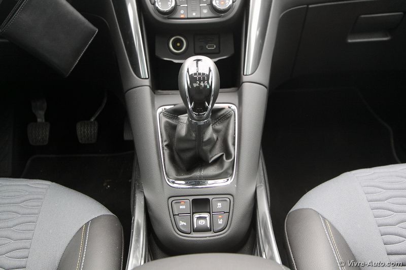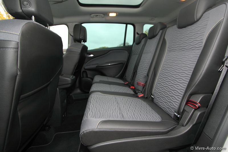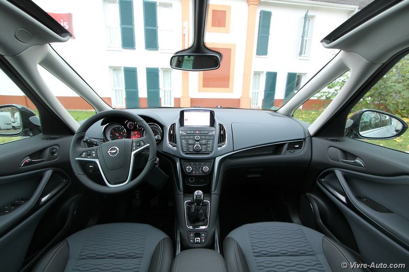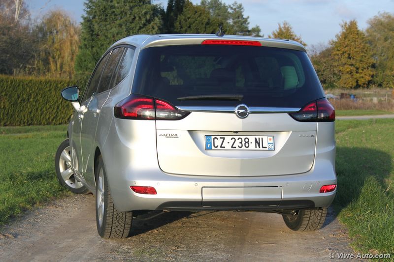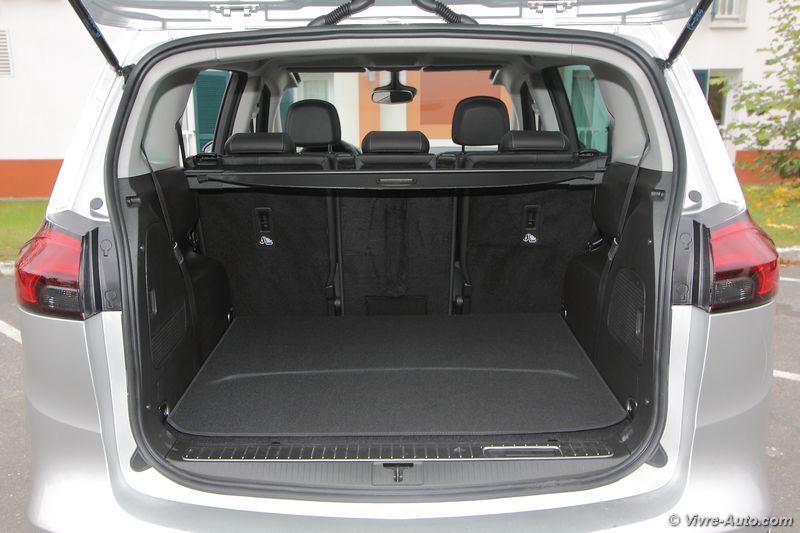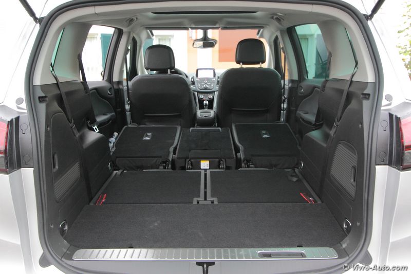 Vous l’aurez compris, le 1.6 CDTi est tout à fait en accord avec le Zafira, dont nous avons eu un réel plaisir à son volant. Le conducteur dispose de réglages multiples pour trouver sa position de conduite idéale et le pare-brise panoramique qui remonte au dessus de la tête offre une grande visibilité. La finition est très flatteuse et l’ensemble des commandes tombent aisément sous la main. Quand aux occupants, notamment les passagers arrière, ils profitent de trois sièges indépendants, mais peu trop ferme à notre goût. De plus il n’y pas de possibilité d’avoir des tablettes aviation dans les dossiers. La modularité est quand à elle bien pensée, le dossier du siège centrale peut s’abaisser et ainsi se transformer en accoudoir. La troisième rangée est composée de deux sièges d’appoint, ils s’escamotent dans le plancher du coffre. Ce dernier offre un volume de 710 litres et s’étend jusqu’à 1.860 litres. Petite astuce bien pratique, le cache-bagage se range dans le plancher et le système de porte-vélo intégré est également de la partie.