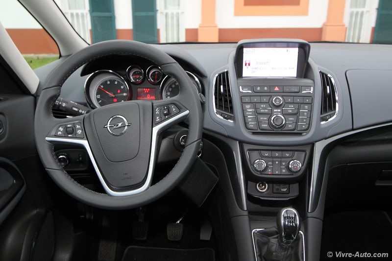 Effectivement, dès le contact enclenché et les premiers mètres effectués on se rend vite compte que les progrès sont là ! L’ancien bloc, le 1,7 l CDTi d’origine Isuzu, malgré ses nombreuses mises à jour se montrait toujours dépassé et bruyant. Ce qui frappe le plus c’est donc le niveau sonore, extrêmement bien maîtrisé. Opel indique même qu’il s’agirait du moteur le plus silencieux de sa catégorie. On ne constate aucune vibration à bord ! L’autre point à souligner c’est la douceur de fonctionnement. D’abord par la boîte de vitesses très bien étagée mais aussi par la souplesse du moteur. Plutôt creux en dessous des 1.500 tr/mn, il se réveille sur une large plage et se montre volontaire. Les reprises sont franches, même en sixième. L’agrément que procure cette nouvelle mécanique ne sera pas le même que si vous êtes à plusieurs à bord avec le coffre chargé, mais devrait suffire pour cet usage. Après plusieurs centaines de kilomètres mélangeant ville et route, on constate qu’on est loin des consommations annoncées par le constructeur mais nous n’avons jamais dépassés les 6 l/100 km ! C’est une bonne note, d’autant plus que le Zafira n’est pas un poids plume avec ses 1,7 tonnes… Pour ce qui est du confort, rien à redire non plus, les suspensions souples filtrent sans problème les irrégularité de la route. En option Opel propose le système FlexRide qui à travers trois modes (Sport, Normal et Touring) varie la sensibilité des amortisseurs, de la direction et de l’accélérateur.