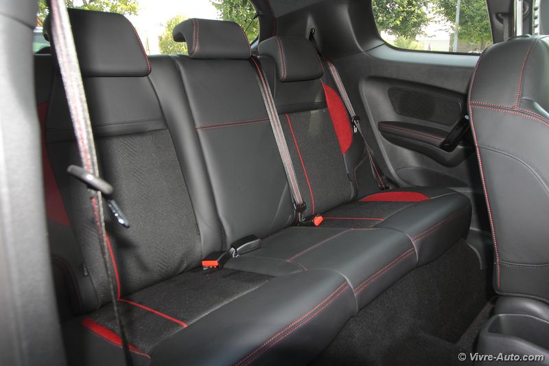 retour de couple dans le train avant et le roulis est absent. La boîte de vitesse manuelle à six rapports est très agréable à manier, les débattements sont courts. La suspensions absorbe les irrégularités de la route sans trop dégrader le confort. On dénote quelques défauts, comme un manque de sonorité de la part du moteur pour une sportive, l’absence de poignée de maintien pour le passager qui doit se contenter de la poignée de porte et la position haute des compte-tours qui peuvent être cachés par la jante du volant suivant votre configuration. Quant au freinage, il se montre endurant mais il manque de mordant et ça peut surprendre au début. Pour le reste, elle semble parfaite et les efforts appliqués à la consommation se ressentent. Avec 139g de rejet de CO², le malus reste raisonnable soit 150€. Comptez environ 7 l/100 km en usage normal. La moyenne grimpe à 13 l/100 km sur des parcours plus musclés.