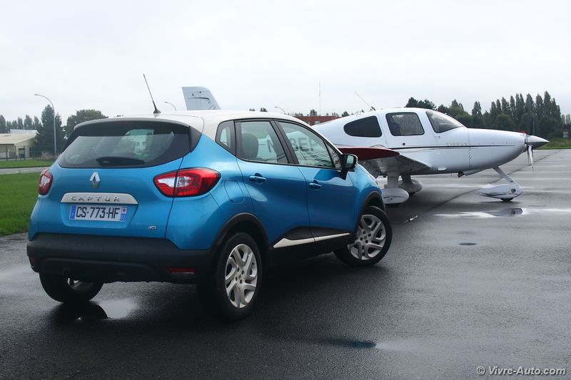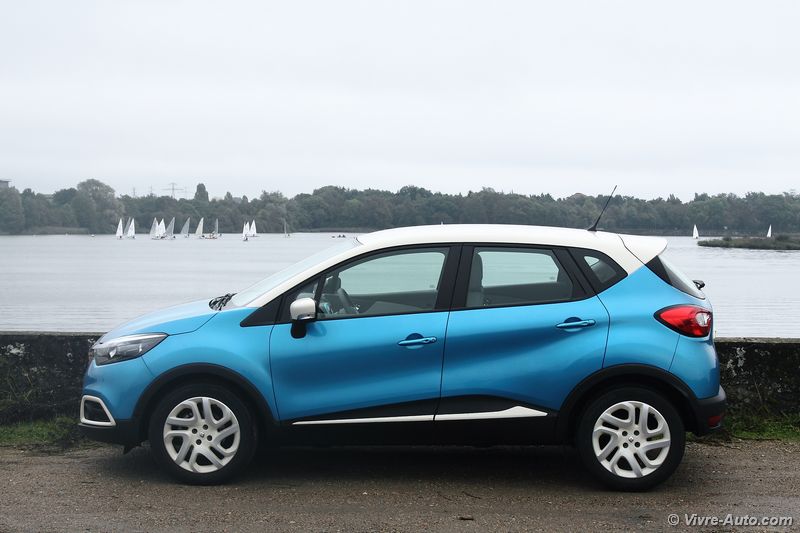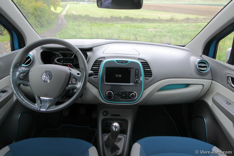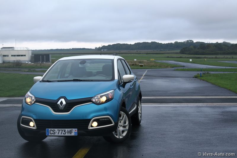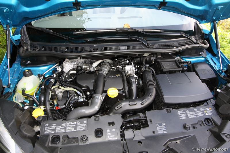 Sous le capot, se loge au choix trois moteurs, deux essences TCe 90 (uniquement sur la finition Life) et TCe 120. En Diesel, seul le dCi 90 est proposé en boîte manuelle cinq rapports ou avec la boîte automatique à double embrayage EDC. Notre essai s’est porté sur ce dernier qui représente le plus gros des ventes. Plutôt discret au son, il fait avancer le Captur sans difficulté en se montrant coupleux à bas régime et dynamique ensuite. Mais il marque aussi un point pour la consommation, lors de notre essai notre moyenne s’affichait aux alentours de 6,5 l/100 km. Le système Stop&Start s’est montré discret et rapide. Sur la route, le crossover offre un bon comportement routier, lui aussi dynamique. Le châssis de la Clio 4 n’y est pas pour rien même avec 100 kg de plus sur la balance. Le confort est maîtrisé, sauf en ville avec la monte pneumatique en 17 pouces où les défauts de la route se font ressentir. Malgré sa garde au sol surélevée, on ne peut pas s’aventurer sur des chemins difficiles d’accès en deux roues motrices. Il n’existera pas de version 4 roues motrices mais plus tard, le système Extended Grip présent sur le Scénic X-Mod devrait arriver.