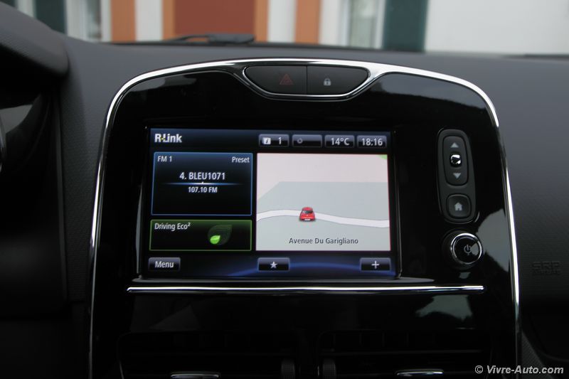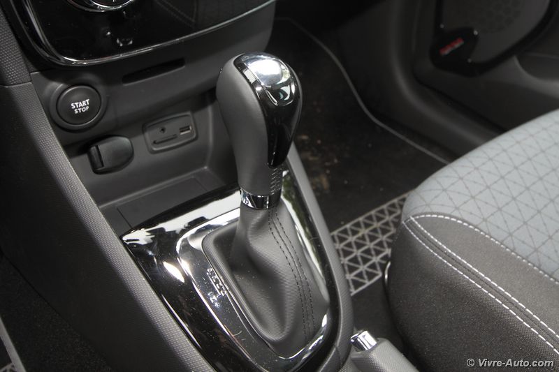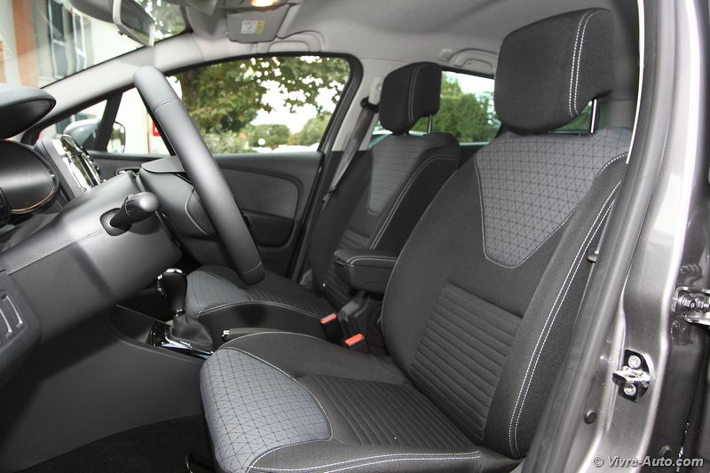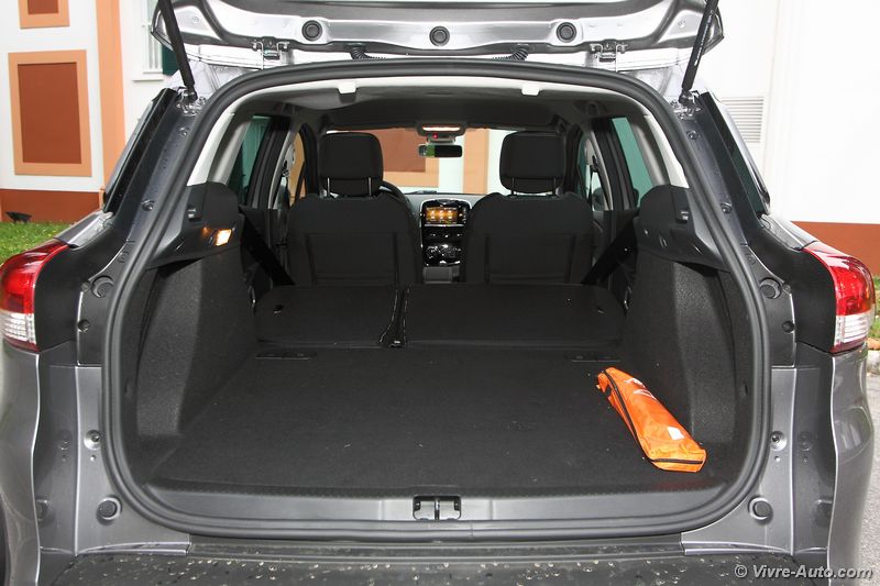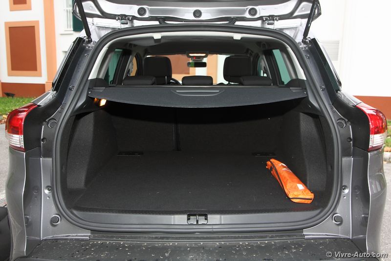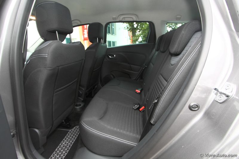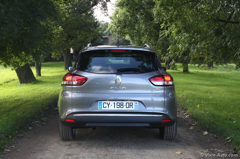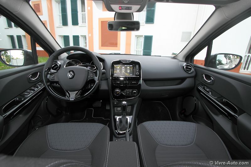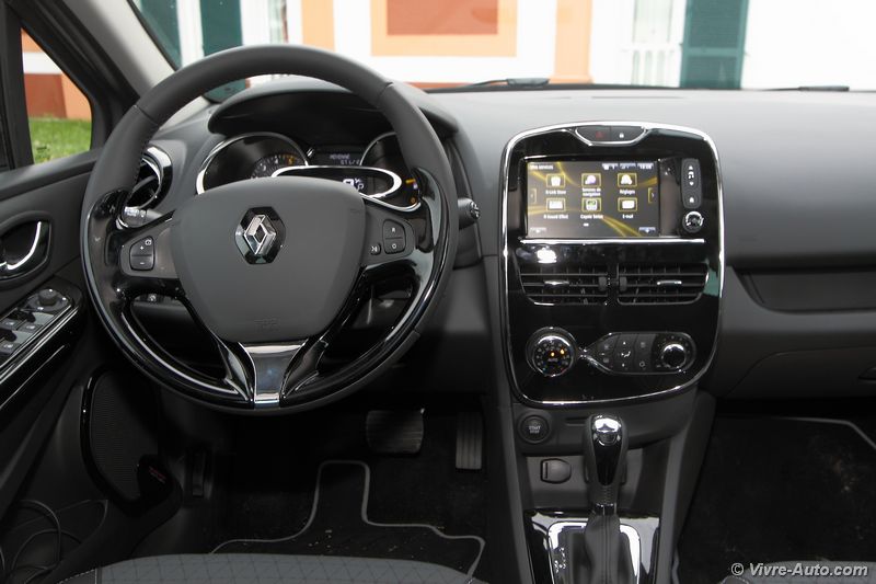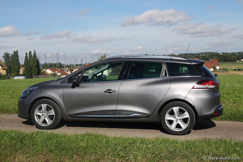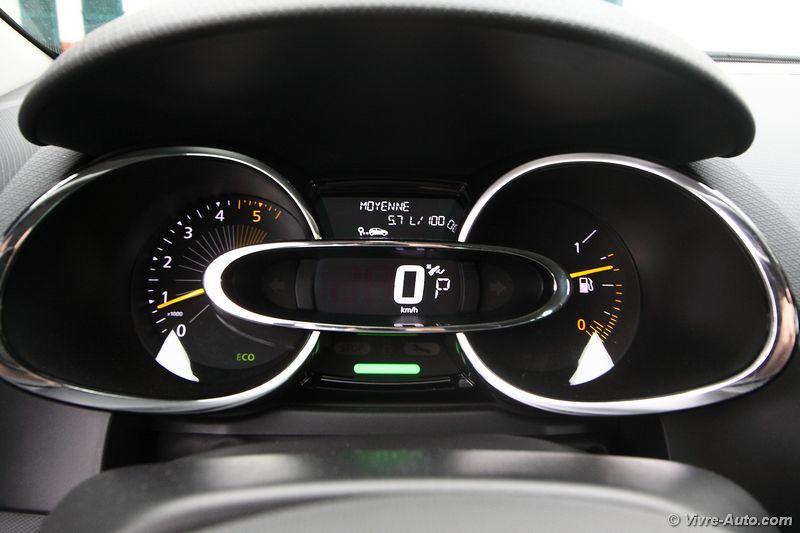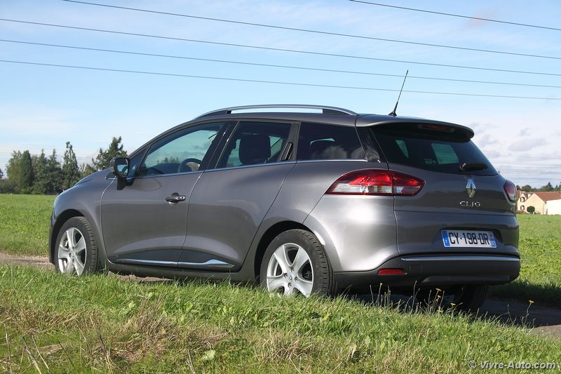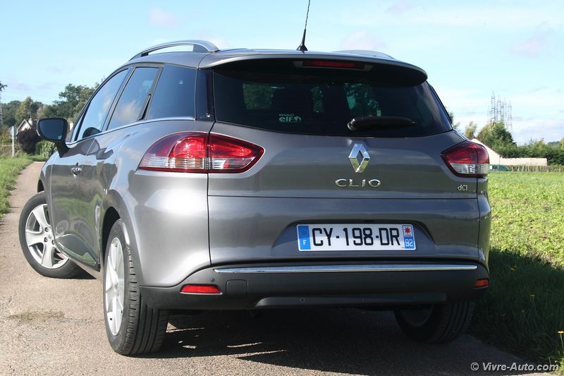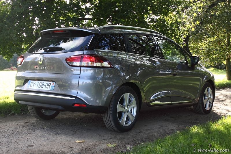 Notre modèle d’essai est équipé du moteur Diesel 1,5 l dCi 90, le plus vendu et on comprend vite pourquoi. Avec une puissance de 90 ch et un couple de 220 Nm disponible dès 1 750 tr/mn, ce quatre cylindres convient parfaitement à la Clio. Même avec environ 50 kilos de plus sur la balance par rapport à la berline, il se montre souple à bas régime et disponible quand il le faut, de quoi être à l’aise en ville comme sur route. De plus il n’est pas très gourmand avec une consommation moyenne au dessus des 5l/100 km, et ce même avec la transmission EDC. Cette boîte à double embrayage qui n’était alors pas encore disponible sur la citadine du losange se montre toujours aussi convaincante avec sa rapidité et sa discrétion. A chaque fin de parcours, un module évalue votre conduite et selon trois critères (accélération, boîte de vitesse et anticipation), une note sur 100 vous est attribuée.