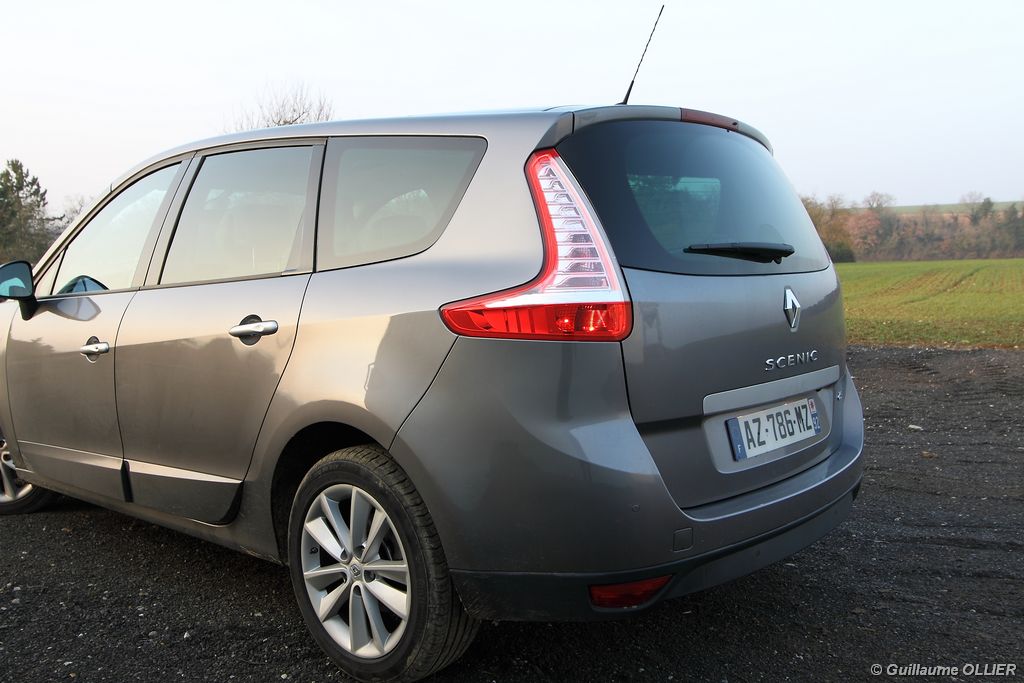 Le style extérieur du Renault Scénic est très consensuel et cela afin de plaire au plus grand nombre, dont les clients possédant l’ancien modèle. Plus longue de 22 cm, la version longue possède une poupe spécifique avec des feux arrière qui mordent sur les ailes. L’empattement s’agrandit de 7 cm et le porte à faux arrière est plus important. La ligne de ce Scénic est homogène et assez réussie.