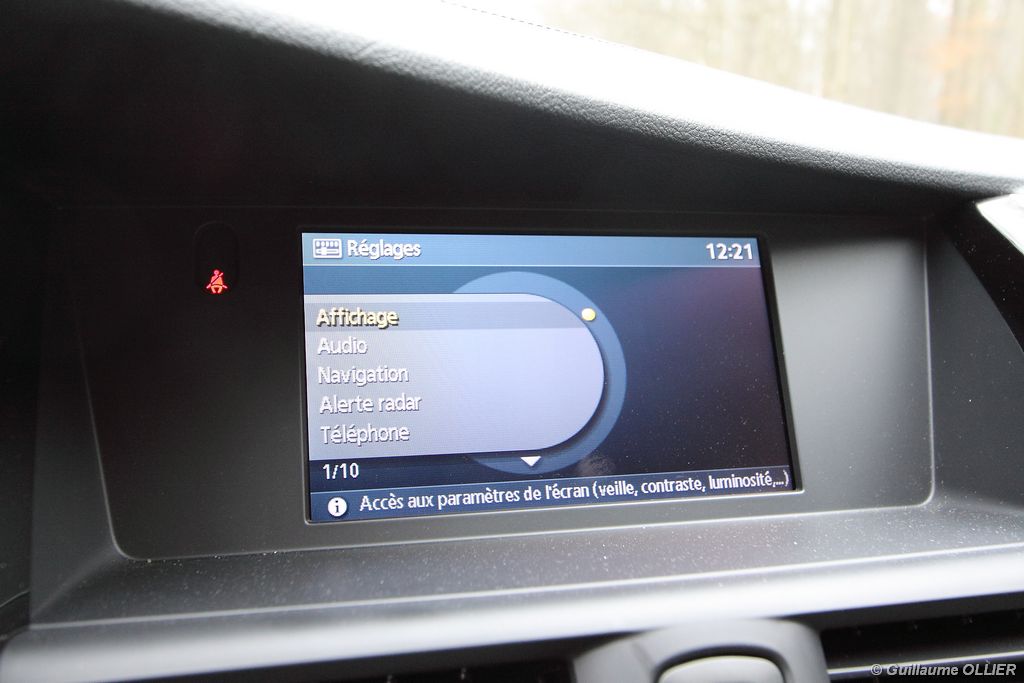 dommage pour un haut de gamme. La visibilité à bord est bonne, mais par temps de pluie la lunette arrière peut vite devenir un obstacle au champ de vision. La Latitude propose en série deux GPS en fonction du niveau de gamme. Le premier, disponible sur la finition Business est tout simplement le Carminat Tomtom Live, que l’on retrouve sur les autres modèles de la marque. La finition Initiale est dotée du Carminat Bluetooth DVD, qui nous est paru curieusement en retrait par rapport au Tomtom, l’affichage et l’ergonomie étant meilleur sur ce dernier. De plus aucune fonction « Live » n’est disponible (météo, info trafic, alerte radars mobiles…). Côté technologie, on retrouve une climatisation tri-zone, une caméra de recul, la carte main libre, et le frein de parking automatique, ce qui facilite la vie au quotidien. Les berlines de la concurrence offrent pour la plupart en plus des équipements de sécurité, absents ici : régulateur de vitesse adaptatif, avertisseur de franchissement de ligne et d’angle mort… A l’arrière l’espace aux jambes est très généreux, avec 251 mm c’est la meilleure valeur du segment. Toutefois la garde au toit n’est pas géniale, un adulte de plus d’1,80 mètre touchera le plafond… Au chapitre rangements, on retrouve un grand nombre d’aménagements, boîte à gants réfrigérée de 9,6 litres, console centrale compartimentée de 2,4 litres, bacs de porte avant/arrière, porte-lunette, porte-gobelet et poches aumônières. Le coffre offre un volume de 477 à 511 litres, un bon point par rapport aux autres berlines du segment. La tôle apparente sur la partie haute du coffre fait négligée, et vos bagages peuvent être gênés par le système hi-fi… Enfin, la banquette arrière est fractionnable 2/3-1/3.