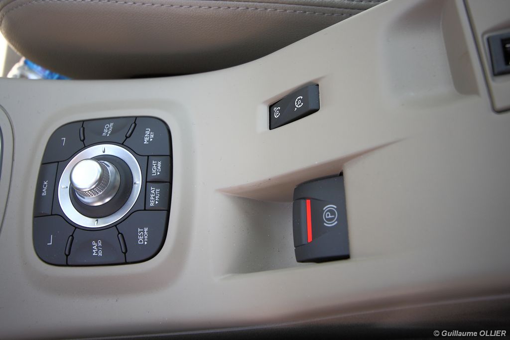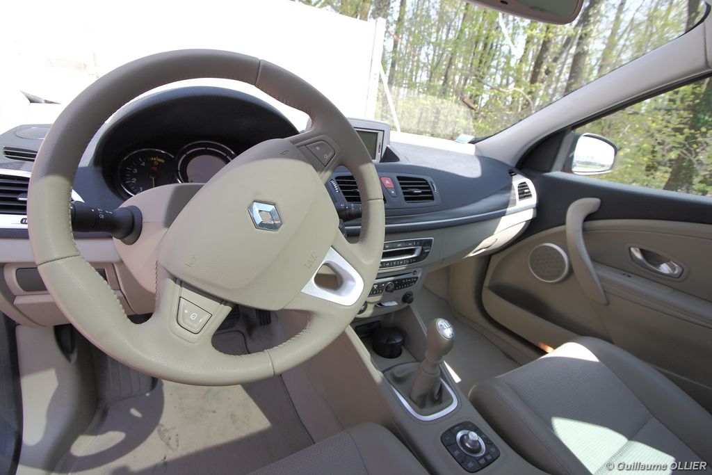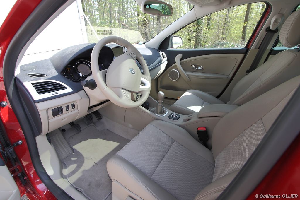 L’intérieur est plutôt soigné, et la console centrale qui parait classique et très agréable. La finition est en net progrès, mais avec encore des reproches notamment au niveau des ajustements, et des inserts au rendu trop plastique. Nous n’avons pas constaté de bruits parasites durant notre essai. Les compteurs sont très réussis, et offrent une bonne visibilité. La carte main libre, tout comme le frein à main électrique sont vraiment un plus sur le plan technologique, et certaines personnes auront du mal à s’en passer. La climatisation offre trois modes de régulation : soft, auto, et fast. Elle est très efficace. Côté multimédia, nous avons apprécié la possibilité de pouvoir connecter une clé USB afin d’écouter de la musique, ou encore même via le streaming Bluetooth ! A noter que l’iPod est compatible, ce qui n’est pas le cas chez les autres constructeurs français. En revanche la Mégane souffre d’un manque de simplicité pour ce qui est de l’ergonomie, les commandes sous le volant sont bien trop nombreuses. On se consolera avec l’excellent GPS Tomtom,