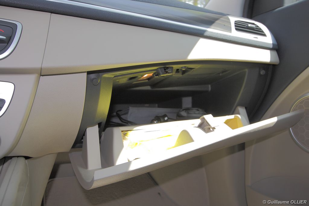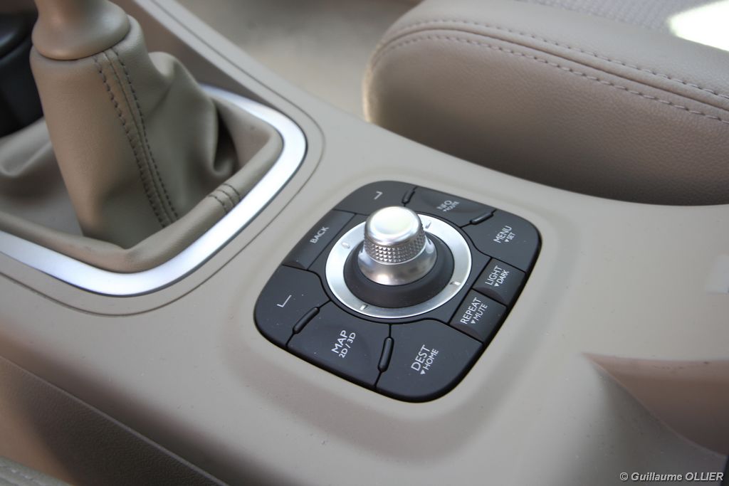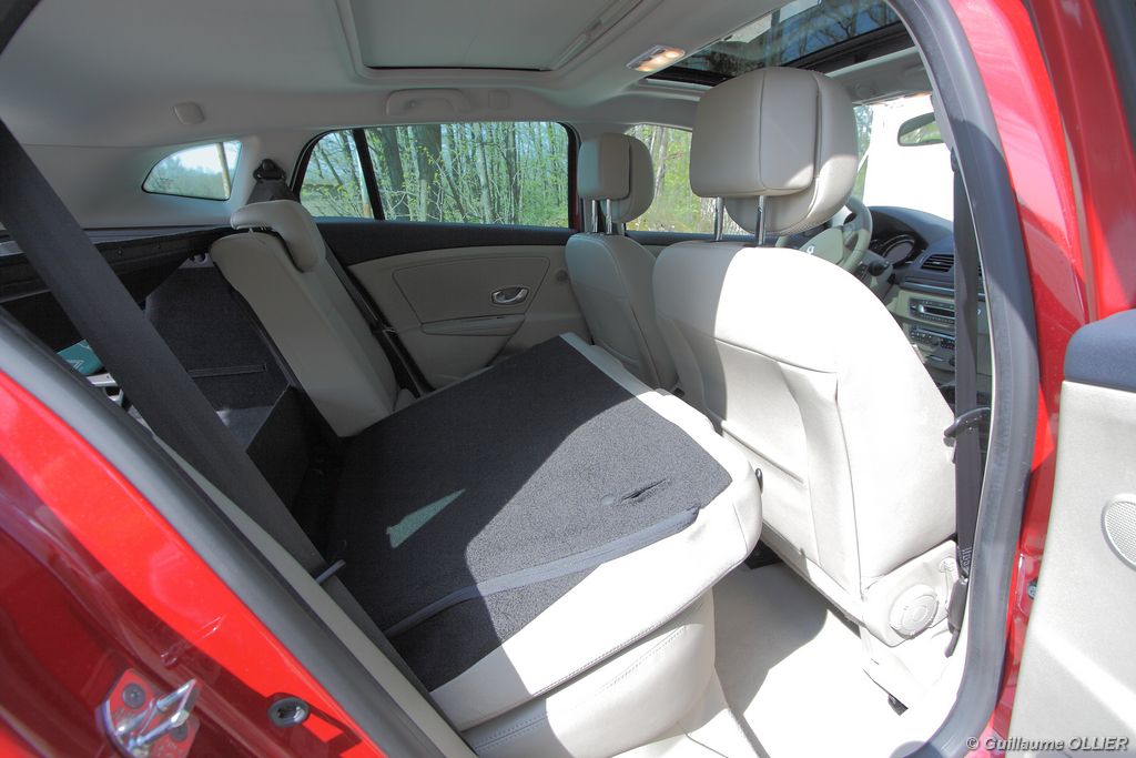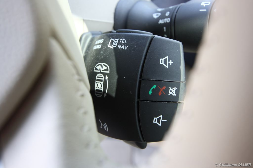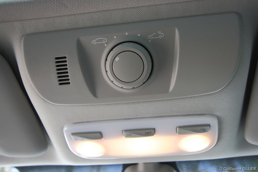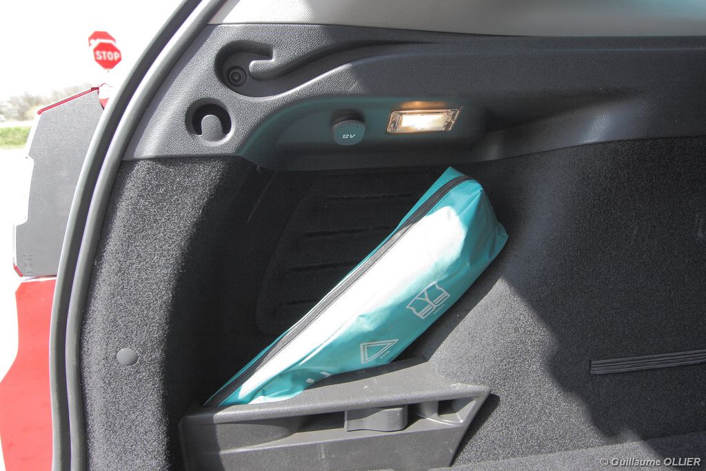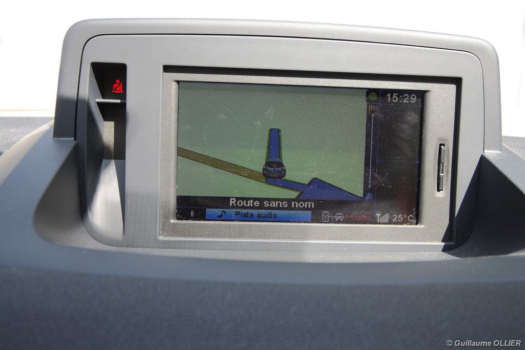 facturé seulement 490€, il se montre très pratique à l’usage, avec des menus intuitifs, et une molette de guidage située prés de l’accoudoir central. Au chapitre habitabilité, les places arrières sont généreuses, et l’espace à bord est appréciable. Seul reproche, l’accoudoir est fixe, cela gênera certains conducteurs. L’intérieur est très lumineux grâce aux deux espaces vitrés, dont un ouvrable. Celui-ci ne s’avère utile qu’en ville, car très bruyant à partir de 70 km/h. Le coffre est assez généreux, avec un volume de 524 litres minimum pouvant s’étendre jusqu’à 1 600 litres. On charge facilement grâce à un seuil relativement bas mais il n’est pas possible d’obtenir un plancher plat. Plusieurs rangements sont présents dans l’habitacle, profitant ainsi de 63 litres de volume supplémentaire.