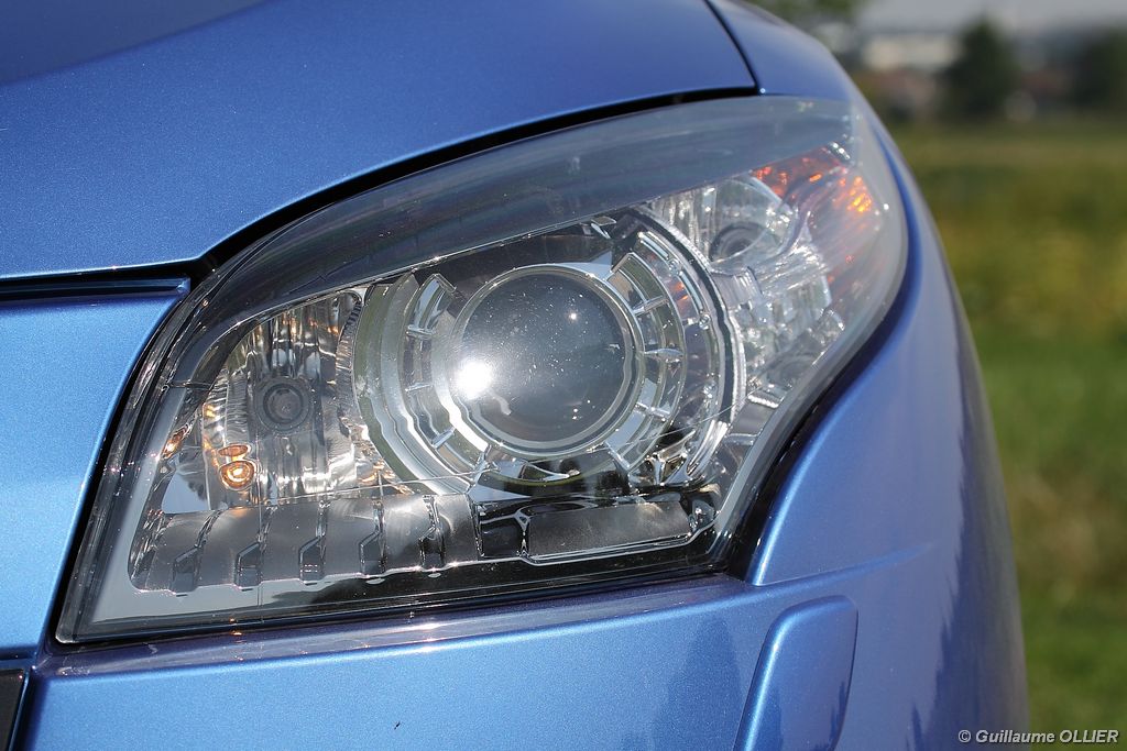 vivre-auto-renault-megane-gt-tce-180-essai-09Extérieurement, la Mégane Coupé offre une ligne dynamique et sportive. Avec la version GT, elle adopte encore plus de caractère, offrant ainsi un côté exclusif par rapport aux autres modèles. A l’avant, Mégane GT se dote d’un bouclier spécifique avec une entrée d’air redessinée soulignée par une traverse noir brillant. Nous retrouvons cette teinte, associée à une peinture métallisée autour des antibrouillards. Les projecteurs sont à fond noir et lorsqu‘ils sont au xénon (option) le regard devient encore plus expressif. A l’arrière la partie inférieure du bouclier devient ton carrosserie et intègre un nouveau diffuseur aérodynamique. Autres détails, un Badge GT est positionné sur la calandre et un autre « GT Renault Sport » sur la malle arrière. Les coques des rétroviseurs sont en gris aluminium, et notons également la présence de jantes alu Jetow de 18 pouces au teint Dark Metal. Quand aux mensurations, il s’agit des mêmes que la version coupé de base, l’abaissement de 12 mm de l’assiette n’est donc pas modifié. Huit teintes sont proposées, Noir Etoilé, Noir Nacré, Gris Eclipse, Gris Platine, Rouge Dyna, Orange Cayenne, Blanc Glacier, et enfin le Bleu Malte (notre modèle) exclusif aux GT et GT Line qui est du plus bel effet. Le design nous a complètement séduits, et cette version arrive parfaitement à se faire remarquer dans la circulation.