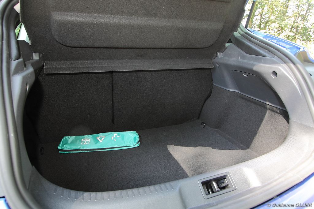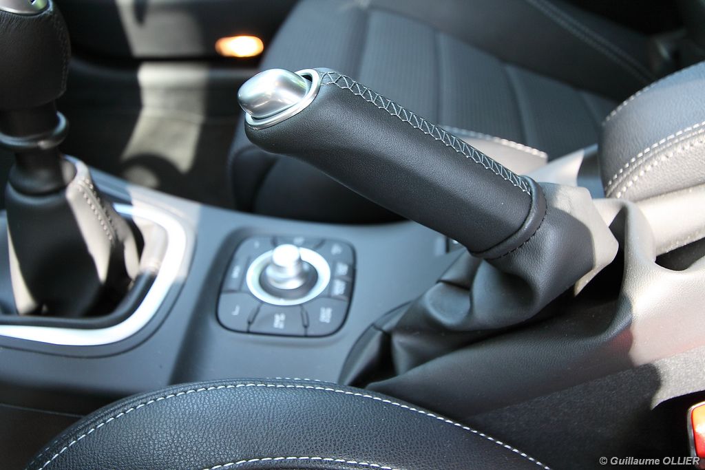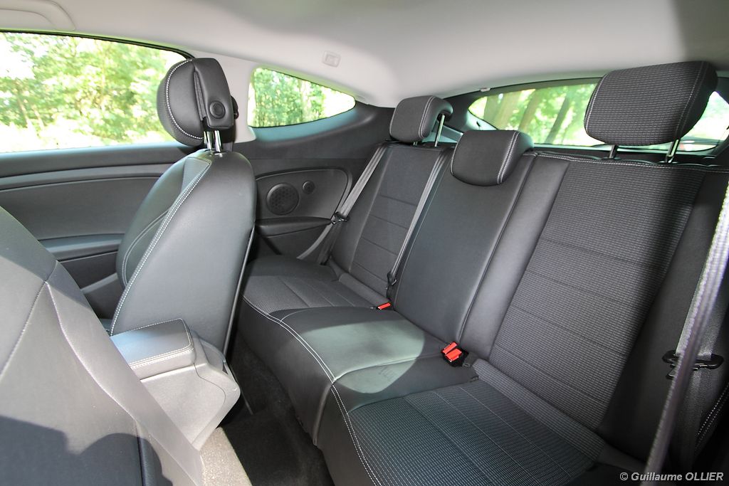 vivre-auto-renault-megane-gt-tce-180-essai-33La version GT apporte quelques changements dans l’habitacle. Plusieurs éléments sont dotés d’une finition Carbone anodisé brillant, comme les poignées de tirage, les aérateurs latéraux et les baguettes de planche de bord où une griffe GT est apposée. Cette inscription se retrouve également sur les appuie-têtes des sièges avant, qui eux, obtiennent un maintien renforcé de l’assise et du dossier. Autre modification, les compte-tours sont analogiques, ce qui a pour but de renforcer le côté sportif. Le pédalier est en aluminium et les seuils de portes adoptent un marquage Renault Sport. Enfin, au poste de conduite, on retrouve le volant cuir à jante épaisse de la Mégane RS, qui est très agréable à manier. Pour le reste l’intérieur est similaire au modèle de base, toujours très lumineux grâce notamment au toit fixe en verre (option). La vie à bord est toujours appréciable, mais nous aurions préféré en revanche une ergonomie un peu plus simple notamment au niveau des commandes sous le volant. A l’arrière, la banquette peut accueillir trois personnes. L’espace aux jambes paraît plus limité que dans la Mégane berline. Les rangements sont de rigueur, avec en plus de la boîte à gants, des trappes dans le plancher, un rangement sous l’accoudoir, et bien sûr des bacs de portières. Quand aux coffre, il offre 344 dm3de volume, ce qui est tout à fait raisonnable dans la catégorie des compactes.