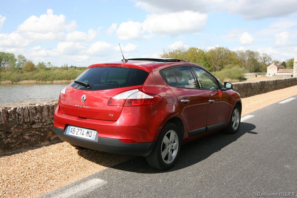 Le TCe 130 fait partie de la famille des moteur dit « downsizés ». C’est-à-dire une faible cylindrée associée à un turbo, ayant pour but d’obtenir un meilleur rapport couple et puissance, tout en réduisant la consommation. Au premier coup de clé, nous sommes surpris par le silence au régime de ralenti. Cela se confirme également en roulant, pour entendre le moteur il faut dépasser les 2 000 tr/mn. Certains trouveront cela confortable, et d’autres un peu frustrant, surtout que le témoin de passage de vitesse s’allume à ce régime. Le moteur est doux et progressif, les accélérations sont bonnes. Il est donc tout à fait possible de rouler tranquillement en silence, mais également adopter une conduite dynamique d’autant plus que le TCe 130 ne s’essouffle pas dans les tours ! Avec ses 1 397 cm3, le moteur reste sobre. Durant notre essai nous n’avons pas dépassé les 9,5 l/10 km en utilisation ville/route. La Mégane possède un train avant particulièrement incisif et un excellent châssis. Le roulis reste bien maîtrisé. Le freinage quand à lui offre un bon mordant. La direction électrique n’est pas son point fort, un peu trop élastique à notre goût. Enfin, le confort de suspension est bien maitrisé, même sur les routes abimées.