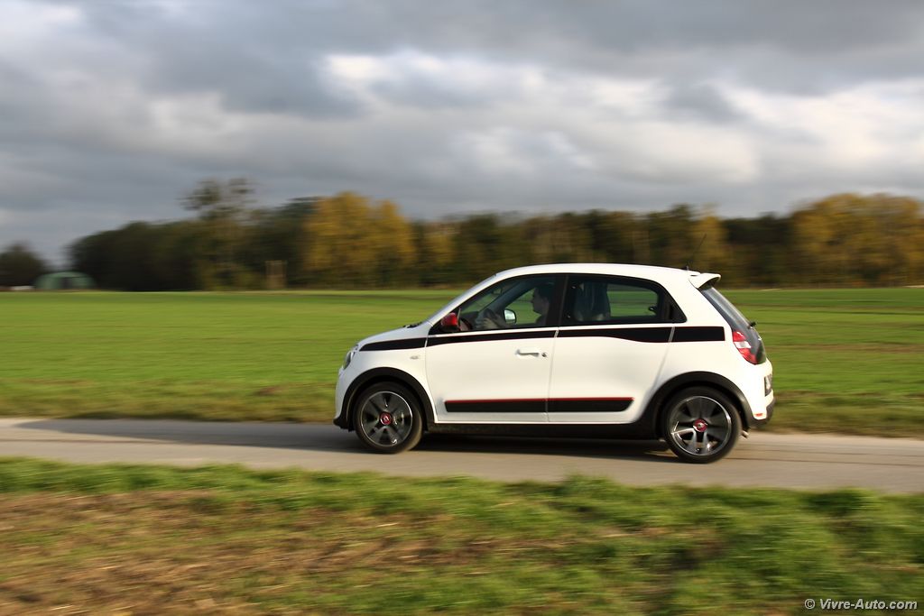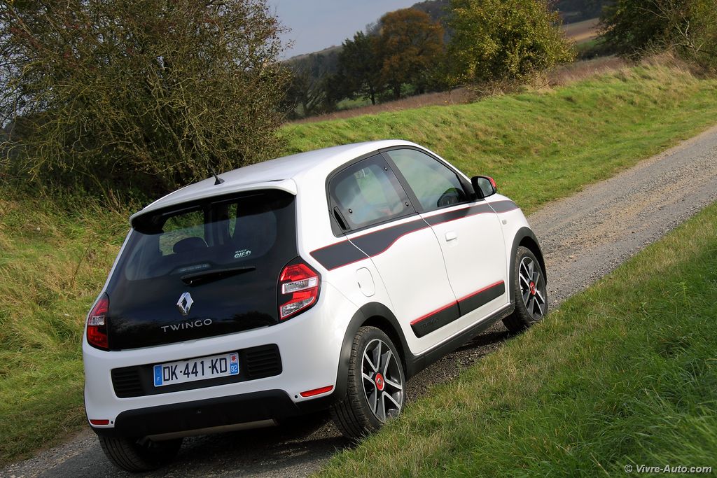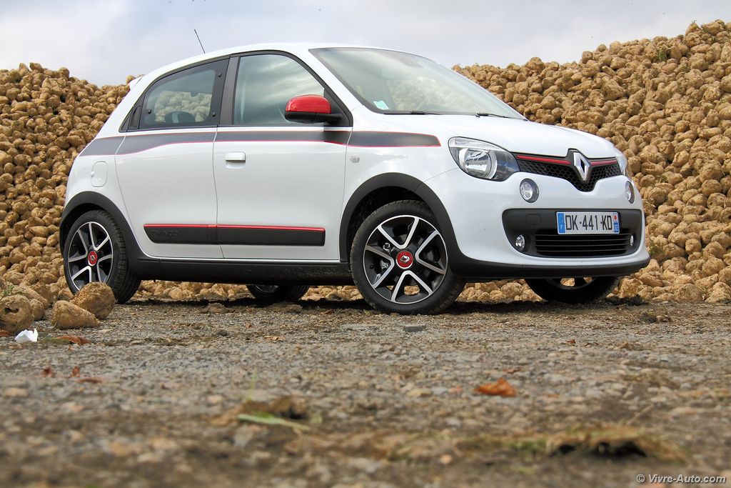 Vendue à partir de 10.900€ avec le petit moteur SCe 70 et la finition de base, la nouvelle Twingo offrira le minimum d’équipements à savoir l’ordinateur de bord, le limiteur de vitesse et la détection de pression des pneus. Donc pas de vitres électriques, ni de radio, ni de banquette rabattable… Le TCe 90 qui est le meilleur choix pour nous, est vendu à partir de 13.400€ (deuxième niveau Zen). A ce prix vous aurez en plus la climatisation manuelle, la banquette arrière 50/50, le système R&Go, les commandes au volant, les vitres électriques, les appuis tête arrière et le volant réglable en hauteur. Ajoutez 350€ pour le Pack City (radars de recul, rétroviseur Renault Twingo 3 - essai sur Vivre Autoextérieurs électrique) et 200€ pour le Pack Modularité (siège conducteur réglable en hauteur et passager rabattable). Pour 1.000€ de plus (14.400€), la finition haute Intens ajoutera les rétroviseurs électrique, le volant cuir, les jantes alliages 16″, le Pack Modularité, le régulateur/limiteur de vitesse, les antibrouillards, l’alerte de franchissement de ligne et les strippings latéraux « ligne ». Notre série limitée Edition One, est facturé 15.800€, elle est doté en plus des décors extérieurs rouge, du Coyotte Série, de la sellerie pack sport en cuir/tissu, du Pack Techno et le pédalier et pommeau de vitesse en alu. Par rapport à la concurrence, les tarifs sont proches des autres mini-citadines voir même en dessous avec le TCe 90 qui offre également plus de puissance.
