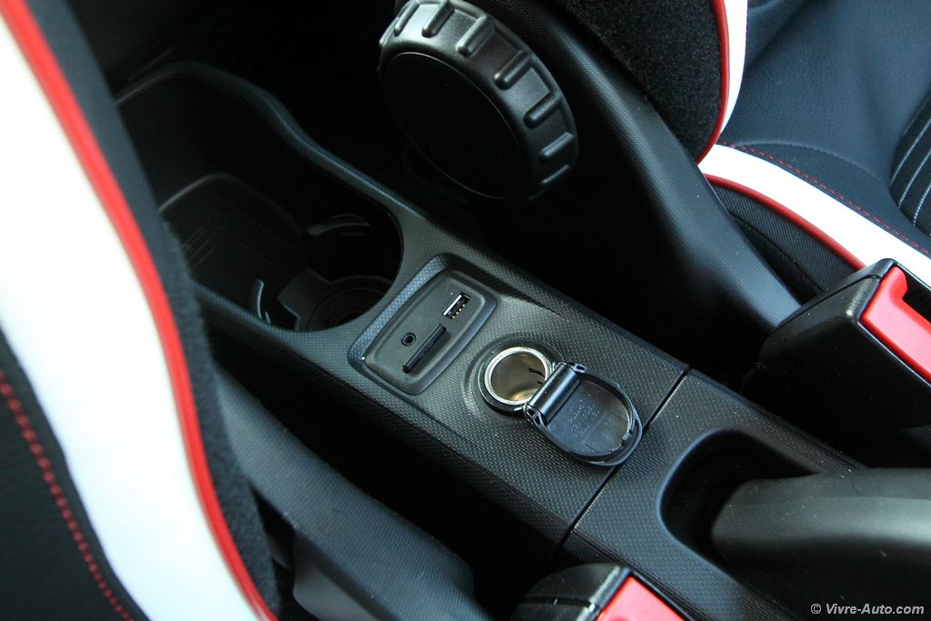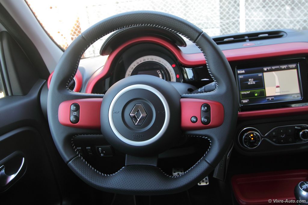 Cette nouvelle Twingo est bien sûr mieux équipés que sa devancière, avec par exemple l’assistance au démarrageRenault Twingo 3 - essai sur Vivre Auto en côte (de série), le régulateur/limiteur de vitesse, la caméra de recul… En revanche, adepte de compte-tours, passez votre chemin ! Pour le multimédia, dès le deuxième niveau de finition (Zen), le constructeur vous offre le système R&Go, qui, via une application sur votre smartphone, comprend la navigation, le téléphone, la musique et les informations du véhicule ou encore un compte tours (vous pouvez revenir !). Un support vous est également fourni. Le deuxième système disponible est la tablette R-Link, elle ne nécessite plus l’usage de son smartphone. Il faudra tout de même débourser 1.000€ en plus de la finition haute pour en disposer. Dommage que cet équipement ne soit vendu que dans un pack (Pack Techno R-Link : 2HP et 1 caisson basse, prise USB, caméra de recul) et non disponible aux autres niveaux.